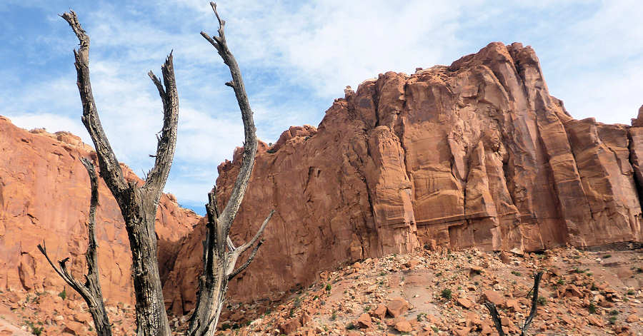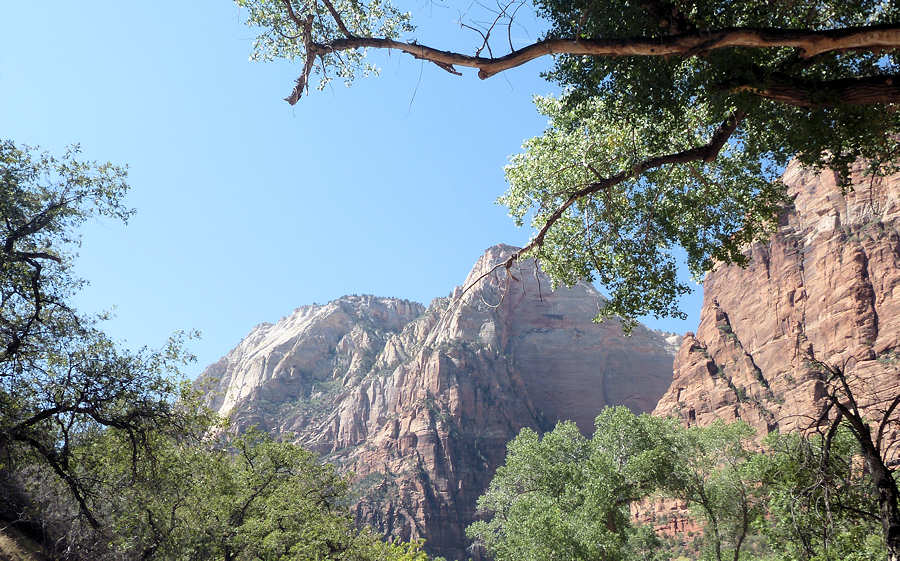 10.September 2015: Wir stehen früh auf um pünktlich um 6:30Uhr beim Frühstück zu sein. Doch es ist noch alles dunkel und langsam erst wird das Buffet gefüllt und eröffnet. Irgendwie klappt das dieses Jahr nicht mit den Öffnungszeiten. Zügig fahren wir anschließend zum etwa 20 Meilen entfernten Trailhead, den wir ja schon von zwei Touren her kennen. Unser erster Trip war in den Frühjahren unserer Hiking-Leidenschaft und entwickelte sich damals zu einem "Horror-Trip". Die 22 Kilometer mit gut 220Meter Höhenunterschied überstieg damals unsere bzw. meine Kondition. Vollbepackt mit einer umfangreichen Fotoausrüstung mit mehreren Kameras und vielen Objektiven schleppte ich mich damals aus dem Canyon, wobei mir Anita damals sogar zum Auto vorlief und mir auf den letzten Metern den Rucksack abnahm. Vor etwa 6 Jahren sind wir den Trip dann als eine Zweitagestour angegangen und das war deutlich entspannter. Jetzt stehen wir also erneut an diesem Trailhead und rüsten uns auf. Unser Plan ist zunächst bis zur vier Meilen entfernten Campsite #4 zu gehen, dort die Rucksäcke zu deponieren und ggf. auch schon das Zelt aufzubauen und dann den Rest zum Kolob Arch zu wandern. Vielleicht aber auch nicht, denn der Arch gilt zwar als vermutlich größter Arch der Welt aber er ist so weit über uns in der Wand, dass man schon genau hinsehen muss, um ihn zu sehen oder gar zu fotografieren. Also trotz der Größe und der Einmaligkeit ist er eher unspektakulär anzusehen. Aufgerüstet mit dem üblichen "Picture before" machen wir uns auf den Weg zur vier Meilen entfernten Campsite 4... ![]() ...und gut eine Stunde stehen wir auf der Campsite 4.... Stutzig geworden, wie wir die vier Meilen in einer Stunden geschafft haben? Nun, zwischen Start am Trailhead und dem erreichen der Campsite 4 liegen einige Erkenntnisse, Entscheidungen und Aktivitäten. Aber der Reihe nach: Wir sind etwa einen halben Kilometer unterwegs. Bisher ging der Trail nur abwärts und wir wissen, dass wir das morgen alles wieder hoch müssen. Während wir auf unserer letzten Tour im Dunkeln gestartet sind ist es jetzt schon recht hell. Zwar scheint die Sonne noch nicht auf unseren Trail aber es ist alles andere als kühl oder gar kalt. Nach dem Abstieg auf dem ersten halben Kilometer folgt ein kleiner Anstieg auf einem dicht bewachsenen Abschnitt. Die Luft ist richtig warm und vor allem stickig und gibt uns schon einen "Vorgucker", was noch folgen wird. Anita dreht sich zu mir um und fragt ebenso leicht schnaufend wie ich: "Wollen wir das eigentlich wirklich?" Wir wissen, dass es heute hier im Canyon lt. Wetterbericht etwa 38Grad werden sollen und dass wir wohl keine Wolke zu Gesicht bekommen werden. Wie haben diesen Trail ja nur gewählt, weil wir alternativ zu unserem großen Trip am Grand Canyon unbedingt noch gerne eine Trekking-Tour machen wollten und hier kurzfristig noch eine Permit erhalten haben. Der Trail ist sicherlich schön und erfahrungsgemäß sehr einsam, die Campsites auch idyllisch am Fluss gelegen aber eben auch anstrengend. Früher hätten wir uns vom ursprünglichen Ziel wahrscheinlich kaum abbringen lassen aber mittlerweile sehen wir einige Dinge des Lebens anders und entscheiden uns daher ungewöhnlich schnell gegen dieses Trip. Der Rückweg zum Auto erfolgt -ich glaube- etwas euphorisch. Den halben Kilometer, den wir eben noch runter gelaufen sind gehen wir jetzt hoch und er zeigt uns, was uns ansonsten morgen -vermutlich schon in der prallen Sonne erwartet hätte. Am Auto angekommene rüsten wir ab ![]() und alsbald geht es los in den Zion um dort ggf. für zwei Tage eine Campsite zu ergattern. Gegen 9Uhr etwa erreichen wir den Zion South Campground. ![]() Zur Erläuterung: Es gibt im Zion N.P. zwei Campgrounds, den Watchman-Campground, dessen Campsites nur vorreserviert werden können und den South-Campground, wo eine Vorab-Reservierung nicht möglich isst. Uns gefällt der South-Campground besser, weil einen etwas wilderen und natürlicheren Charakter hat und die Campsites etwas weiter auseinander liegen. Leider müssen wir in den letzten Jahren feststellen, dass die Nachfrage an Camping wohl kontinuierlich gestiegen ist, so dass es immer schwieriger wird, auf dem South Campground eine freie Site zu finden. Doch jetzt haben wir Glück und finden tatsächlich eine freie Site, sogar eine der von uns favorisierten. ![]() Sie liegt zwar in der Nähe der Durchgangsstraße und tagsüber mag man sich vorkommen, als würde man auf dem Rastplatz der A3 am Autobahn Kreuz Duisburg campen, aber dafür ist sie recht großzügig, liegt etwas abseits und am Abend fahren nur noch wenige Autos vorbei. Und das ist -zufälligerweise- die Campsite 4, also genau die selbe Nummer wie im Kolob Arch. Und obwohl wir für die zweite Nacht schon eine Reservierung für den Watchman-Campground haben, beschließen wir, diese Campsite für zwei Nächte zu nehmen. Unsere bereits bezahlte Campsite werden wir einfach jemandem verschenken. Nach dem Aufbau des Zeltes, den Anita heute komplett alleine durchführt, gehen wir einer unserer Lieblingsbeschäftigungen nach, dem Fahren mit dem Shuttle. Einmal fahren wir komplett durch und auf dem Rückweg halten wir natürlich traditionsgemäß an der Lodge um dort auf der Wiese unter dem großen Baum ausgiebig "abzuhängen" und uns eine Portion Fritten zu teilen. Allerdings stoppen wir diesmal schon an der Station "Grotto" um die etwa halbe Meile zu Fuß zu gehen um heute wenigstens etwas zu wandern. ![]() Was würden wir bloß machen, wenn es den Baum an der Zion Lodge irgendwann einmal nicht mehr gibt? Wir und vermutlich eine Million anderer Besucher würden ihn vermissen und sich stattdessen einen bösen Sonnenbrand einfangen. ![]() Im Schatten des Baumes rätseln wir, was wir denn jetzt machen würden, wenn wir unsere heutige Tour planmäßig fortgeführt hätten: Vermutlich irgendwo zwischen Campsite 4 und dem Kolob-Arch händeringend bei fast 40 Grad einen Schatten suchen. Gut so, unsere E