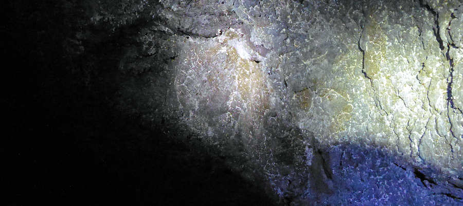 Nach etwa 50 Metern erreichen wir dann auch schon das Ende der Höhle, so dass wir nach ein paar Fotos mit den Taschenlampen wieder umkehren.