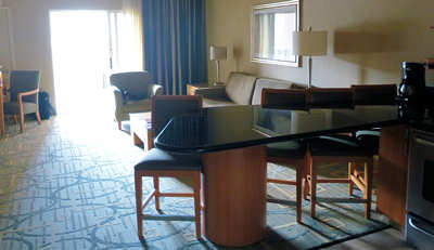 Exakt eine Stunde nach der Landung verlassen wir schon mit dem Wagen die Vermietstation, das ist für uns schon fast schon rekordverdächtig. Dazu trägt bei, dass die Wagenübernahme eine Sache von wenigen Minuten ist: Wir brauchen uns nicht am Schalter anstellen, stattdessen steht der Wagen im "Stall" und wir brauchen nur noch losfahren und an der Ausfahrt unsere Papiere vorzeigen.