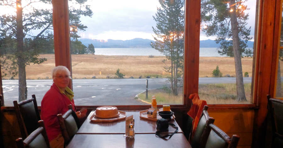 Ob er diesmal pünktlich ist oder nicht wissen wir nicht, da wir die vorausgesagte Zeit gar nicht wissen. Wir führen unsere Runde weiter und erreichen nach 150 Meilen wieder unsere Cabin. Das heißt, wir sind mal eben gute 250km gefahren, nur so zum Sightseeing. Aber der Park ist eben nicht nur der erste Nationalpark der Welt, er ist auch riesig groß. Zu unserer Überraschung ist unser Zimmer noch nicht fertig, so dass wir uns nach einer halben Stunde Siesta noch einmal auf den Weg machen. Am Trailhead zum Uncle Tom Trail halten wir kurz um zu schauen, ob wir den morgen machen wollen. Im Grant Village schlendern wir mal durch den Outdoor-Laden, bevor es dann wieder zurück geht. Unser Zimmer ist gemacht und bald schon geht es ins Cafe zum Abendessen. Wir sind am Abend ein ganz klein wenig mürrisch, weil wir nicht wandern konnten bzw. nicht wollten. Dabei hatte sich das Wetter im südwestlichen Teil des Parks deutlich gebessert aber irgendwie konnten wir uns dann doch nicht mehr aufraffen, den ursprünglich für heute geplanten Beaver Ponds Trail machen. So, jetzt geht´s ins Bett, mal sehen, was uns morgen erwartet.