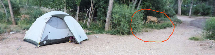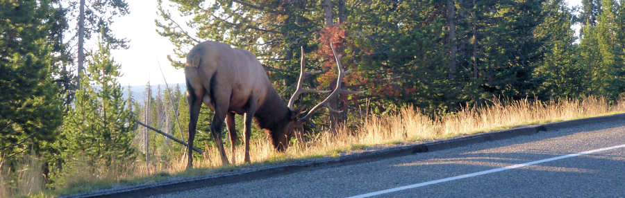 Der Trailhead ist von hier aus ca. 11 Meilen entfernt und unterwegs entdecken wir einen kapitalen Wapiti. Wir wahren einen angemessenen Sicherheitsabstand, denn im Moment ist Brunftzeit und in dieser Zeit sind die männlichen Tiere wohl sehr streitsüchtig. Mit Testosteron vollgepumpt bis in die letzte Ecke machen sie dabei keinen Unterschied zwischen Hirschen und Menschen. So zumindest entnehmen wir das Warnhinweisen.