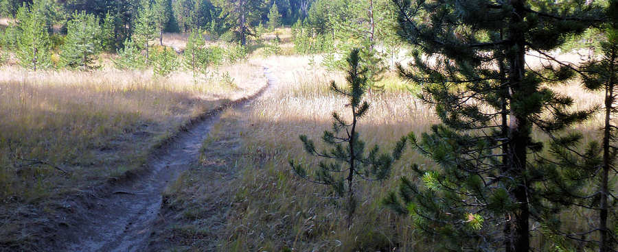 Doch die Hiker scheinen gar nicht alle zusammenzugehören, denn die meisten biegen links ab und haben vermutlich eine Trekkingtour vor sich. Nur drei Hiker biegen mit uns nach rechts ab. Der weitere Wegverlauf steht im großen Kontrast zu dem ersten Kilometer. Von geringfügigen Höhenschwankungen verläuft der Trail relativ eben und genau wie vorgestern durch beschattete Wälder und offene Wiesen.