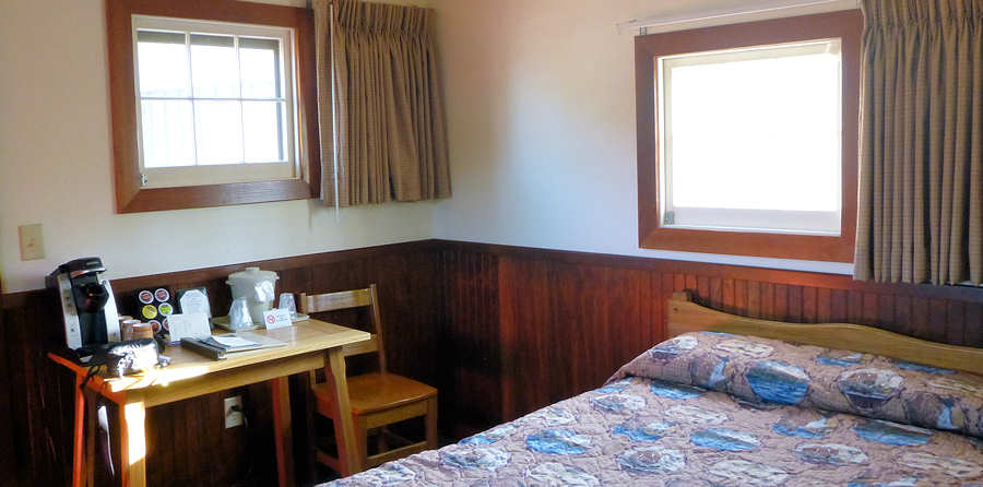 Gegen 18Uhr erreichen wir unsere Cabin, die uns für vier Nächte Unterschlupf bieten soll. Beim Betreten der Cabin wird uns noch einmal schnell bewusst, wie luxuriös wir die letzten Tage genächtigt haben aber ernsthaft überrascht sind wir nicht, kennen wir diese Cabins doch aus den beiden letzten Jahren. Die Cabin ist eben so, wie es eine Cabin vermuten lässt: Einfach, zweckmäßig, rustikal und historisch. Das einzige, was uns immer wieder ärgert, ist die Tatsache, dass die Cabin mit einem sehr schmalen Bett ausgestattet ist und das als Doppelbett angeboten wird.