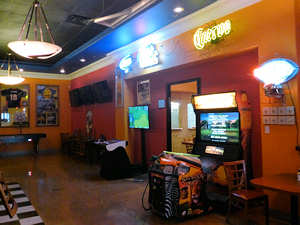 eigentliche Bar und die nebenliegende Bowlingbahn des Motels. Alles