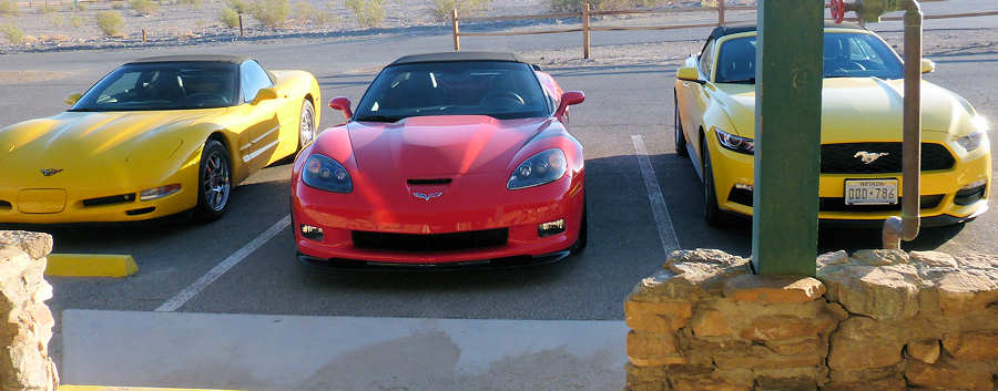 28.03.2016: Zion N.P. => Pahrump Um 7:30Uhr checken wir aus und es ist wieder lausig kalt. Das Thermometer zeigt Minusgrade an. Im gegenüberliegenden Golden Hill frühstücken wir, wobei wir den Eindruck haben, dass das Restaurant zwar schon geöffnet ist, die Mitarbeiter aber noch nicht so richtig auf Gäste eingestellt sind. Aber letztlich klappt alles und bald schon geht es los in Richtung Pahrump. In Hurricane machen wir beim Walmart Zwischenstation, kaufen schon mal ein paar Mitbringsel ein und dann geht es auch schon wieder weiter. Unser Weg führt uns über Las Vegas, wo wir uns im Storage der Dinge entledigen, die wir nicht mehr brauchen, z.B. Schmutzwäsche, Schlafsäcke, Zelt usw. Alles andere wird im Wagen möglichst komplett und in wenigen Taschen verstaut. Der nächste Halt ist auf dem Parkplatz vor dem Autovermieter, wo wir das nächste Auto übernehmen. Lt. Mail ist es ein gelber Mustang. Gerne hätten wir wieder einen Camaro, aber wenn man nur die kleine Cabrio-Klasse bucht muss man schon zufrieden sein, wenn man schon ein kostenloses Upgrade erhält. Wir übernehmen den Wagen in der Box und stellen beim rumschauen fest, dass ein Wechsel des Wagens kaum möglich gewesen wäre, da unser Mustang neben der Ober-Oberklasse Porsche und Mercedes das einzige verfügbare Cabrio ist. Auf dem Parkplatz räumen wir dann alles vom SUV ins Cabrio, geben den treuen Weggefährten ab und los geht's. Mit dem Wagen können wir zufrieden sein, denn er ist Keyless: Sobald wir uns dem Wagen mit unseren Empfängern nähern öffnen sich die Türen und außerdem ist das Platzangebot im Kofferraum deutlich besser als befürchtet. Am späten Nachmittag erreichen wir dann Pahrump und gehen dort beim Dennys essen. Anders als beim Denny´s in Twentynine Palms werden wir zügig bedient und der Aufenthalt im Restaurant hält sich in Grenzen. Anschließend checken wir dort im Best Western Pahrump Oasis ein, das uns gut gefällt. Die Zimmer sind recht großzügig und gepflegt.
