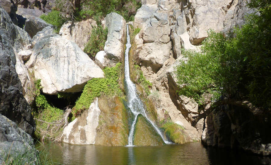 01.04.2016: Death Valley (Darwin Fall) Um kurz nach Sieben treten wir aus dem Zimmer. Vor unserer Tür stehen drei rasante Cabrios (eins von uns). Der IQ (oder ist der Anstand?) von Corvette-Fahrern scheinen antiproportional zu den PS ihrer Fahrzeige zu stehen, zumindest bei einigen. Denn das mittlere Cabrio steht vor dem Durchgang zu den Zimmern. ![]() Aber ansonsten sieht alles prächtig aus: Wieder keine Wolke am Himmel und das Thermometer zeigt jetzt schon 22 Grad. Das wird wieder ein toller Tag. Zunächst gehen wir im Salon frühstücken. Anita wurde nach dem letzten Besuch im Rahmen einer Umfrage ausgesucht und hat dafür neben einer Gutschrift auch noch Gutscheine für ein Frühstück im Salon erhalten. Da das Frühstück im Salon über $20 kostet scheint ihnen die Umfrage letztes Jahr wirklich wichtig gewesen zu sein. Nachdem uns der Ranger gestern beruhigte, dass wir auch mit einem Wagen ohne 4x4 und hoher Bodenfreiheit bis zum Trailhead vom Darwin Fall gelangen und nur ein paar größere Steine umfahren müssen, haben wir unsere Hiking-Schuhe noch nicht gesäubert und eingefettet sondern: noch einmal angezogen! Den Darwin Fall haben wir deshalb auf unser Programm genommen, weil wir bereits vor ein paar Jahren auf dem Trail waren und ihn nicht gefunden haben. Peinlich: Mal finden wir die legendäre Campsite 2 auf dem Westrim Trail im Zion nicht und dann wieder den Darwin Fall. Der Ranger, dem wir von unserem Missgeschick berichteten, lachte nur und meinte, wir sollen einfach immer der Pipeline folgen. (Anmerkung: Das haben wir damals auch gemacht). Dafür wissen wir jetzt auch, wofür diese Pipeline ist und gleich vorweg: das hätten wir nie gedacht. Diese sehr provisorisch und anfällig wirkende Leitung transportiert das Wasser vom Darwin Fall etwa 4 Meilen nach Panamint und versorgt dort das Motel, das Restaurant (wo es meinen Bluecheeseburger gibt ;-) und den Campground. Doch jetzt der Reihe nach und erst mal schauen, ob wir den Darwin Fall diesmal finden. Wir fahren zunächst in Richtung Panamint. Die Temperatur wechselt von den bereits erwähnten 22 Grad (Dach runter und offen fahren) bis zu 11 Grad auf dem Pass (4956feet Höhe => Dach hoch und geschlossen fahren). Vom Pass kommend sehen wir in der Ferne ganz hinten erstmalig die noch schneebedeckten Berge der Sierra Nevada mit Mount Whitney. ![]() Eigentlich hätten wir die bei jeder Fahrt nach Panamint sehen müssen. Aber die Luft ist gestern und heute ungewöhnlich klar und erlaubt eine ungewöhnliche Weitsicht. Vermutlich sind sie uns deshalb heute das erste Mal aufgefallen. Nach einiger Zeit erreichen wir die unpaved Road zum Trailhead. Die ist übrigens nach wie vor nicht ausgeschildert und direkt hinter einer Kurve. Knapp 2,5 Meilen fahren wir über eine nichtasphaltierte Straße, die zwar ziemlich staubt aber uns -bzw. unserem Mustang- keine Schwierigkeiten bereitet. Am Trailhead sind außer uns nur 2 Autos, was eine eher ruhige Tour verspricht. Wir folgen der erwähnten Wasserleitung, ![]() deren Verankerung so manchem Fachmann wohl die Blässe ins Gesicht treiben würde: ![]() Der Weg führt zunächst einer breiten Schneise entlang in einen Canyon. Den genauen Weg kann man sich aussuchen, entweder über Kies oder über einen klassischen Trampelpfad. Sollte man die Pipeline einmal versehentlich aus den Augen verloren haben ist das kein Problem, man muss sich dann auf die Ohren verlassen. Denn alle 50 Meter zischt es, weil Rohrverbinder undicht sind und Wasser rausspritzt. Dann nimmt der Trail plötzlich eine andere Gestalt an: Es geht durch Dickicht und nicht immer ist klar zu erkennen, wie er weitergeht. Erinnerungen von damals kommen auf. Gelegentlich muss man etwas über einen großen Fels klettern, durch die Büsche gehen und hin und wieder die Seite eines kleinen Rinnsales überqueren. Und dann naht die Stelle, an der wir damals kein Weiterkommen erkennen konnten und erfolglos umgekehrt sind. Ob wir diesmal erfolgreicher sein werden? Na ja, das werde ich in den nächsten Tagen berichten.... oder wie es früher in den Filmen hieß: "Fortsetzung folgt!" Wir finden tatsächlich einen kleinen Durchgang in den Büschen, der dafür spricht, dass es hier weitergehen könnte. Dann kommt ein großer Fels und mir vergeht langsam die Lust. Anita, die für ihr Leben gerne klettert, schlägt sich weiter durch während ich abwarte. Kurz darauf ruft sie mich mit einer Kopfbewegung zu ihr hin. Sie scheint einen Weg gefunden zu haben. Und im selben Moment kommt uns ein junges Pärchen entgegen, das uns bestätigt, dass wir auf dem richtigen Weg sind. Und nach geschätzten 2 Minuten stehen wir vor dem Wasserfall. ![]() Ein herrliches Bild und der Fall bietet sich förmlich für einen erfrischenden Sprung an, was natürlich verboten ist. Bereits am Trailhead wird darauf hingewiesen. Wir verharren ein paar Minuten und schon bekommen wir Besuch von anderen Hikern. Erst ein amerikanisches Ehepaar, dann eine Amerikanerin mit Kind und in der Ferne hört man schon, dass uns gleich weitere Hiker begegnen werden. Wir kehren um und werden uns über zwei Dinge bewusst: 1.) Bei unserem damaligen Versuch, den Darwoin Fall zu finden, fehlten uns nur noch geschätzte 100 Meter bis zum Ziel. 2.) Der Weg war damals wesentlich zugewachsener als heute. Und wenn es nach mir gegangen wäre, wären wir auch heute wieder unverrichteter Dinge umgekehrt, da ich nicht glaubte, dass der Weg weiterführt. Da der Ranger gestern auch noch sagte, wir müssen nur der Pipeline folgen um den Fall zu finden, waren wir sowieso etwas verunsichert als plötzlich der Pipeline nicht mehr zu sehen war. Es geht also zurück und unser Gehör hat uns nicht getäuscht: Es kommen uns einige Hiker entgegen. Es geht zurück ins Motel und hier an den Pool. Leider musste wir eben feststellen, dass unsere Maid unsere Toilettenspülung beschäddigt hat. Wir informieren einen Mitarbeiter und er verspricht Abhilfe. Nach einer guten halben Stunde am Pool bzw. vorrangig für Unterwa