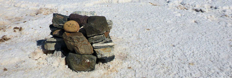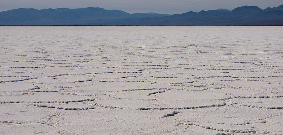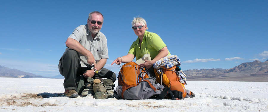 30.03.2016: Death Valley Der gestrige Wetterbericht hat nicht gelogen. Über dem Himmel von Death Valley hängen einige dickere Wolken und gefühlsmäßig würde ich sagen, dass es heute noch regnen wird. Gegen 8Uhr starten wir in Richtung Badwater. Bei Furnace Creek beginnt die Badwater Road, die auf der Ostseite des eigentlichen Death Valleys entlang führt. Ein Hinweisschild sagt uns das, was wir bereits wissen: Nach ca. 44 Meilen ist die Badwater Road gesperrt. Der Hintergrund sind die Flashfloods im vergangenen Oktober, die ein Stück der Badwater Road mitgerissen haben muss und bis heute noch nicht vollständig repariert ist. Das Badwater selbst ist aber zum Glück von hier aus noch zu erreichen. Und was wir heute vorhaben ist, dass wir zur tiefsten Stelle der westlichen Hemisphäre durchdringen wollen, also zur wirklich tiefsten Stelle. Zum Hintergrund: Unmittelbar neben der Badwater Road befindet sich Badwater und hier ein Schild mit dem Hinweis, dass dies mit -87 Meter die tiefste Stelle ist. Bis vor einigen Jahren gab es auch noch den Hinweis, dass die wirklich tiefste Stelle nicht hier sondern einige Meilen inmitten des Salzsees ist. Genauere Angaben gab und gibt es nicht. Auf einer Karte haben wir vor einigen Jahren diesen Punkt eingezeichnet gefunden, jedoch ohne jegliche Koordinaten oder GPS-Daten. Mit spitzem Bleistift und Lineal haben wir dann versucht, die GPS-Daten zu errechnen und sind losgegangen. Kommunikation ist alles: Ich hatte Anita so verstanden, dass es dort am tiefsten Punkt eine Plakette oder Hinweisschild gibt. Anita behauptete später, sie habe gesagt: "Vielleicht hat man ja dort eine Plakette montiert". Auf jeden Fall haben wir nichts dergleichen gefunden und für uns festgelegt, dass diese Stelle, die wir errechnet haben, ab sofort die tiefste Stelle ist - zumindest für uns. Jahre später kam uns die Idee, an dieser Stelle eine Bild für unsere Weihnachtskarte zu machen und haben "unsere tiefste Stelle" wieder angesteuert. Wir glaubten unseren Augen kaum zu trauen. Weniger als zwei Meter von unserer Stelle entfernt existierte nun eine Plakette im Boden mit dem Hinweis, dass hier die tiefste Stelle ist. Wir sind immer noch stolz darauf, diese Stelle mit einfachsten Mittels so gut errechnet zu haben. Während die meisten Besucher also nur bis zu dem 30 Meter entfernten Schild gehen, einige wenige mehrere Hundert Meter bis zum Salzsee, werden wir heute einen längeren Hike vor uns haben. Die drei wichtigsten Dinge zum Überleben haben wir dabei: Wasser, GPS-Gerät und Kamera. Na ja, einige andere Utensilien haben wir natürlich auch noch dabei: Sonnencreme, Erste-Hilfe-Set usw. Das GPS-Gerät zeigt uns Luftlinie 5,4km an. Nach geschätzten 500Metern beginnt fast eine neue Welt: Außer dem Wind ist es absolut still. Kein Geräusch von Autos, von Menschen oder Maschinen. ![]() Der Salzboden ist sehr hell und reflektiert das Sonnenlicht, was ein traumhaftes Licht zum Fotografieren ergibt. Weil die Gefahr des Sonnenbrands aber sehr hoch ist haben wir uns mit 50er Sonnencreme eingerieben, tragen trotz der aufkommenden Wärme/Hitze lange Hosen und nehmen die Mützen kaum einmal ab. Der Weg als solches ist ein Easy Walk. Alles absolut eben, ab und zu mal hochstehende Salzkrusten, die uns grundsätzlich dazu einladen, darüber zu stolpern, wenn man statt nach vorne und unten in der Gegend herum sieht. ![]() Diesen Hilke darf man aber nur in den kühleren Monaten angehen. Der heutige Hike ist noch einigermaßen okay: Die Temperatur mit 25 Grad noch angenehm und dennoch brennt die Sonne durch unsere Kleidung auf der Haut. Wer diesen Hike im Sommer macht ist nicht nur leichtsinnig sondern hat nach unserer Meinung nach eine Affinität zum Suizid. Obwohl der Hike vielleicht für andere monoton zu sein scheint ist er ein Highlight. Das herrliche Licht, die Ruhe und eine leichte Orientierungslosigkeit, wenn wir das GPS-Gerät nicht hätten. Überall gibt es etwas zu sehen: Der Boden sieht diesmal völlig anders aus als bei unserem letzten Trip. Damals gab es mehreckige flache Felder von ca. 1m mal 1m, die sich alle aneinander fügten und jeweils von einer Art Salznaht begrenzt wurde. Die sind wohl aufgrund der letzten Überschwemmung verschwunden und beginnen jetzt wieder langsam zu wachsen. ![]() In einiger Entfernung sehe ich etwas, was ich als vier Vögel identifiziere. Anita weist mich darauf hin, dass das nur vier Steine oder eben aufgerichtete Salzkrusten sind. Wir kommen näher und ich stelle noch einmal meine Behauptung der vier Vögel auf, die wiederum von Anita abgewatscht wird. Erst als sich die Salzkrusten bewegen und ihr Gefieder säubern weicht sie von ihrer Meinung etwas ab. ![]() Wie gut, dass wir unser GPS-Gerät haben, dass uns eindeutig signalisiert, dass wir uns in eine Richtung bewegen. Das Gefühl für Entfernung geht nämlich völlig verloren. Wir gehen und gehen aber die andere Seite des Valleys scheint keinen Meter näher zu kommen, alles sieht gleich aus. Ich kann mir gut vorstellen, dass hier Verirrte verzweifeln. Sie glauben, dass das Ziel nur einige Hundert Meter entfernt ist und laufen und laufen und erreichen ihr Ziel nie. Wir unseres schon. Mittlerweile ist es uns ziemlich heiß: Zwar zeigt unser Thermometer tatsächlich nur 25 bis 29 Grad an aber die Sonne -wie bereits erwähnt- brennt uns auf den Pelz. Langsam nähern wir uns einem zunächst nur als schwarzen Punkt erkennbaren Marker, der genau auf unserer Ideallinie liegt. Und tatsächlich erreichen wir nach 1Stunde und 15Minuten den tiefsten Punkt. Die Plakette fehlt: Weggeschwemmt oder gestohlen? Stattdessen gibt einen Steinhaufen, auf dem ein Stein die genaue Höhe angibt: ![]() Wir machen viele Fotos und erfreuen uns, wieder an diesem Punkt zu sein. ![]() Stattdessen machen wir nochmals eine Aufnahme gleichzeitig vom tiefsten Punkt des Death Valleys und dem höchsten: Telescope Peak, dessen 3.300Meter hoher Gipfel vermutlich bis etwa Juni noch zugeschneit ist. ![]() Wir gehen langsam