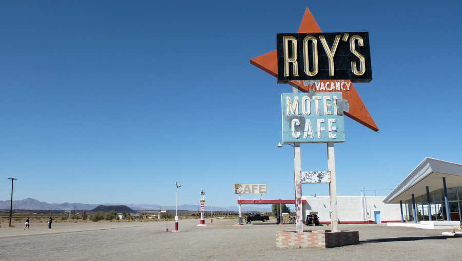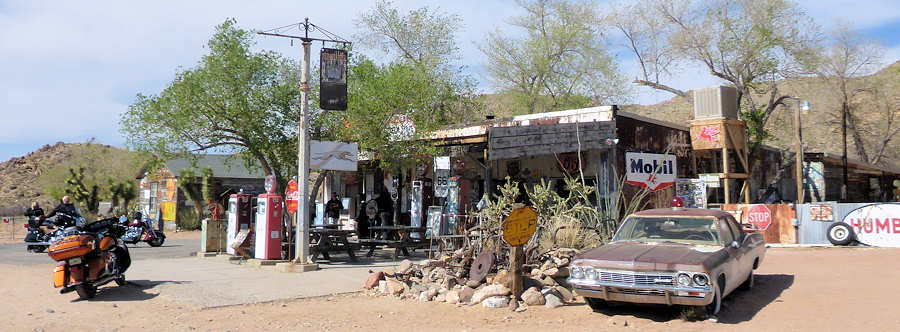 schnell und nach wenigen Minuten sind wir schon auf der Piste. Es geht in Richtung Süd-Kalifornien. Diesmal sind wir recht früh im Jahr im Urlaub und unten in Anza Borrego hoffen wir -wenn auch nicht mit heißen- aber zumindest mit etwas wärmeren Temperaturen. 2001 waren wir an Weihnachten hier und empfanden die Temperaturen recht mild. Allerdings waren wir damals auch noch nicht mit dem Zelt unterwegs, was das ganze auch wieder relativiert. Gut 350 Meilen erwarten uns heute. Der Weg führt uns ein gutes Stück über die Route 66, die für uns auch heute noch nicht ihre Faszination verloren hat, obwohl es doch nur ein einfacher Highway ist. ![]() Unser Highlight Nr. 1 ist Roy´s Cafe. Genau genommen ist es mein Highlight, denn Anita kannte es vorher gar nicht. Das Witzige ist, dass ich erst kürzlich über das Cafe gelesen hatte und mir vor dem Urlaub noch vorgenommen habe, mal zu recherchieren, wo es denn liegt. Aber wie das oft eben so ist. Irgendwann ist es aus dem Kopf und man denkt nicht mehr dran. Und jetzt führt uns der Weg zufällig daran vorbei: ![]() |