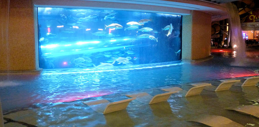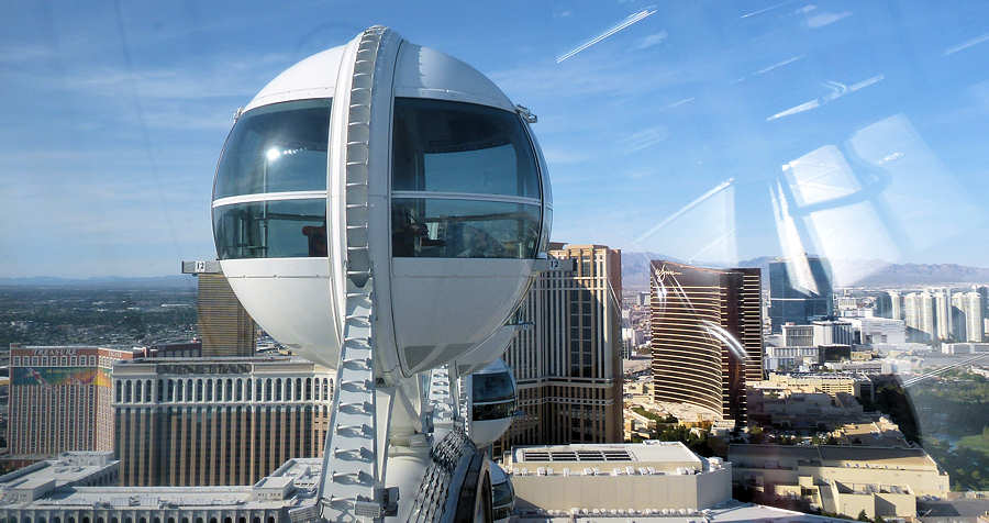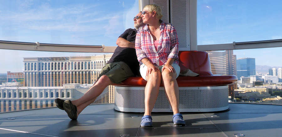 03.04.2016: LAS VEGAS Wir stehen um 7Uhr auf, frühstücken unsere letzte Bearclaw auf dem Balkon und um 10Uhr sind wir in der Nähe des Restaurants "Peppermill" am Parkplatz. "Peppermill" ist bekannt aus dem Film "Showgirls", wo einige Außenaufnahmen gedreht wurden. Der Film als solches ist inhaltlich mit Sicherheit kein "Knüller", aber als Vegas Fan ein "must see". Wir gehen aber nicht ins Peppermill sondern haben etwas ganz anderes vor: Anita hat mir zum Geburtstag einen Gutschein für Fahrten mit dem "Big Bus" geschenkt. Das ist ein oben offener Doppeldecker, der verschiedene Routen in Vegas anfährt. In dem zweitägigen Paket, was sie für uns gebucht hat, ist neben der normalen "Hop on - Hop off-Tour" auch noch eine Nachtfahrt und eine Fahrt im High-Roller mit drin. Wir beginnen zunächst mit der Blue-Tour, die uns durch Downtown führt. Auch in Teile, in denen wir (vielleicht zum Glück) noch nie waren. Unter anderem -und das gefällt uns als Filmfreunden nun wieder- kommen wir an dem Gebrauchtwarengeschäft auf "Hangover 3" vorbei, in welchem Alan seine Freundin kennengelernt hat. Der Bus hält an vielen Punkten an und gibt Gelegenheit, die Fahrt zu unterbrechen und mit dem nächsten Bus fortzusetzen. Wir machen das, was die meisten in unserem Bus tun: Sitzen bleiben. Die meisten fahren tatsächlich die komplette Runde ohne Unterbrechung und überhaupt sind wir überrascht, dass so wenige Fahrgäste auf dem Bus sind. Zum Glück haben wir vorgesorgt und Mützen und Sonnencreme dabei, denn obwohl es nur um die 25 bis 30 Grad sind brennt die Sonne sehr. Zu empfehlen sind auch Getränke, die haben wir leider nicht dabei. Die Touren werden jeweils von einem Guide begleitet, der auf dem Bus für gute Stimmung sorgt. Nach dieser Runde wechseln wir von der Blue-Tour (Downtown) auf die Red-Tour, die uns über den Strip führt. Die vielen Informationen sind interessant aber -wie für Amerika wichtig- wird mit vielen Millionenbeträgen um sich geworfen: Welches Hotel wie viel gekostet hat. Nichts desto trotz: Bei einigen Herstellungspreisen, die bis in die Milliarden gehen, frage ich mich schon, wie sich solche Investitionen überhaupt amortisieren sollen. Aber außer den Millionen- und Milliardenbeträgen (im Amerikanischen "Billions") gibt es auch andere Informationen. Zum Beispiel wissen wir jetzt endlich, weshalb es in den meisten Casinos diese bunten und oft nicht angenehm anzusehenden Teppiche gibt. Bisher glaubte ich, dass die Amerikaner und wir sehr unterschiedliche Geschmäcker haben. Die Lösung: Man möcht die Blicke der Besucher weg vom Boden hin zu den Spielautomaten lenken. Ich sage: Das glückt ihnen ! Nach diesen beiden spannenden und sonnigen Touren geht es zum Dennys zum Mittagessen. Zunächst versuchen wir es bei dem Denny´s direkt neben dem "Big Bus Welcome Center", das übrigens nur aus dem Parkplatz besteht. Doch es ist Sonntag Mittag und eine längere Schlange erwartet uns hier. "20 Minuten Wartezeit" signalisiert uns ein Hinweisschild. Das ist uns zu lang und wir fahren einen vom Strip etwas entfernten Denny´s an. Na gut, das dauert auch 20 Minuten und dann hätten wir auch gleich beim ersten Denny´s warten können, doch dieser hier ist was völlig leer und angenehm ruhig. Nach dieser Mittagspause geht es zum "Welcome Las Vegas"-Signal vorbei zum obligatorischen "We were here Foto". Um 19Uhr soll die Abendfahrt starten und wir überlegen jetzt um 15:30Uhr, ob wir denn die Fahrt mit dem Highroller noch zeitlich schaffen können oder sie besser auf morgen verlegen. Das kommt auf die Warteschlange an und wir beschließen, es einfach mal zu probieren. Einen Parkplatz dort zu finden stellt keine Herausforderung dar. Auch der Umtausch unseres Gutscheins in echte Karten geht schnell, da niemand an der Kasse ansteht. Im Vorraum wird Anitas Handtasche noch untersucht und schon geht es in den Vorraum, der den Besuchern das Warten in der Warteschlange angenehm gestalten helfen soll, indem ein Film gezeiht wird. Diesen Warteraum passieren wir in wenigen Sekunden, weil es keine Wartenden gibt. Da wir auch keine Fotos in der Greenbox von uns machen lassen wollen geht es sofort zum Boarding zu den Gondeln und auch hier sind wir überrascht über den Andrang, der gegen null tendiert. Vor einem Jahr, als der Highroller gerade geöffnet hatte, gab es hier Warteschlangen. Ist die Attraktivität mittlerweile verblasst? Oder haben wir nur Glück, dass heute und jetzt -obwohl es Sonntag ist- die Touristen lieber woanders sind? Egal! Und dann kommt das Unglaubliche: Uns allein gehört für eine halbe Stunde die Gondel Nr.13 ganz allein. ![]() Langsam hebt sich die Gondel in die Höhe und gibt einen Blick über Las Vegas frei. In 2015 wurde er u.a. als "Best View of Las Vegas" ausgezeichnet. ![]() Der Highroller, momentan noch mit 550 Feet (ca. 160m) das höchste Riesenrad der Welt ist so groß, dass es "unseren" Kölner Dom noch um wenige Meter überragt. Nach etwa einer Viertel Stunde läuft dann auf den Bildschirmender Countdown zum "Höhepunkt" der Fahrt, wenn die 550Feet erreicht werden. ![]() Wie man sieht sind auch die andere Gondeln intim besetzt. Übrigens gibt es auch noch die Möglichkeit der "Happy half hour". Gegen einen Aufpreis von $10/Person wird einem in der Gondel eine Bar reingerollt und dann heißt es "Freies Trinken, bis die Fahrt zu Ende ist." Oder mit den Worten von Udo Lindenberg zu seinen damaligen Trinkekzessen: "Dann habe ich den Wirt erst mal gefragt: Und, was muss weg?" Nach einer halben Stunde erreichen wir -man mag es kaum glauben- wieder den ursprünglichen Ausgangspunkt und verlassen die Gondel. Übrigens, wir haben zwar keine Bar reinrollen gesehen aber dann im Ausgangsbereich im Gift-Shop doch ein paar Leute gesehen, deren Ausstrahlung und Ausdunstung den Verdacht nahelegen, dass sie das "Happy Half Hour" in Anspruch genommen haben. Und ich vermute, dass sie mehr über das Angebot der rollenden Bar als über den Ausblick auf Las Vega berichten könnte