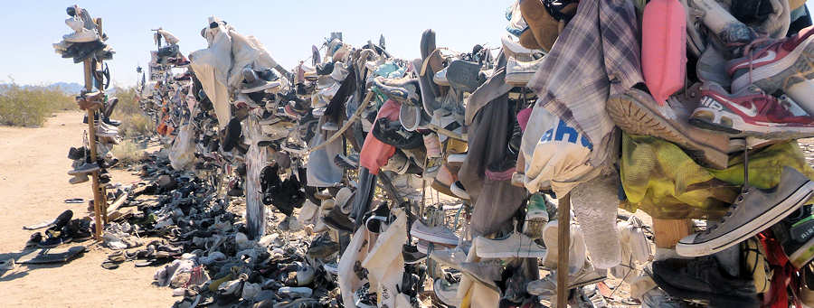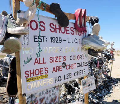24.03.2016: Joshua Tree N.P. => Kingman Wieder klingelt der Wecker um 5:30Uhr und wieder lassen wir uns Zeit. Während wir uns noch langsam an das Hellerwerden gewöhnen arbeitet die Kamera schon munter vor sich hin. Als es hell genug ist beginnen wir entspannt mit dem Abbau des Zeltes sowie der notwendigen Pflege des Equipments. Trotz der Kälte der vergangenen Tage ist es zum Glück knochentrocken gewesen und so ist es gar nicht notwendig, das Zelt und die Schlafsäcke lange trocknen zu lassen. ![]() Und ausserdem erfolgt der Abbau bei sehr angenehmen Temperaturen und auch die Nachbarschaft, die in der Nacht noch angereist ist, hat qualitativ stark zugewonnen. Zwei nette Mädels, denen wir noch mit unserem Dosenöffner aushelfen können, erzählen, dass eine von ihnen von New York nach Kalifornien zieht und sie den Umzug mit diesem Trip verbinden. Nach gut einer Stunde sind wir mit dem Abbau und dem Gespräch durch und es geht los. In Twentynine Palms wird beim Mc.Donald´s noch kurz gefrühstückt bis es dann auf die Piste geht. Wir probieren ein völlig neues Produkt zum Frühstück, nämlich die All New Breakfast Bowl. Bringen wir es mal auf den Punkt: Die Bowl unterscheidet sich schwer von den Bildern, auf die wir uns verlassen hatten. Das nächste Mal werden wir lieber wieder auf altbewährtes zurückgreifen. Jeder, der schon mal die unendlich weiten Highways der USA befahren hat weiß, dass das Fahren weit mehr bedeuten kann als nur von Punkt A zu Punkt B zu kommen. Und so genießen auch wir das Fahren genauso wie die anderen Dinge im Urlaub. Man kann ja so viel sehen und auch immer wieder Neues, z.B. ![]() Der Hintergrund erschließt sich uns leider nicht. Aber an einem ca. 50 Meter langen Zaun, der ein abgebranntes Haus umgibt, hängen Hunderte, ich schätze eher Tausende von Schuhen. ![]() Nach gut vier Stunden erreichen wir Kingman, wo wir eine Kleinigkeit essen, bevor es gleich weiter geht. Weil wir noch recht früh hier sind und vermutlich noch nicht im Days Inn einchecken können entschließen wir uns zu etwas Verrücktem: Morgen kommen wir zwar an Hackberry vorbei, der legendären Tankstelle, die heute "nur" noch ein Giftshop ist, aber wir werden sie so früh passieren, dass sie noch gechlossen sein wird. Aus diesem Grund nehmen wir die gut 20 Meilen in Kauf um schon mal vorbeizufahren und mal wieder Fotos zu machen. ![]() Ich weiß nicht, wie oft wir schon hier waren und wieviel Fotos ich in den vielen Jahren gemacht habe: auf Dia, in Digital, in Farbe, in Schwarzweiß. Aber eben noch nicht in 3D und ausserdem gibt es immer wieder Neues zu entdecken. ![]() Aber bald schon geht es zurück nach Kingman. Endlich wieder mit Strom versorgt können wir alle Gerätschaften statt mit 12 Volt mit richtigen 110 Volt laden (mir ist schon klar, dass es da letztlich keinen Unterschied gibt, wenn man die entsprechenden Ladegeräte hat) und sämtliche Bilder und Clips wieder sichern und konfertieren. Und so wird es dann doch Mitternacht, bis wir endlich ins Bett kommen. Gute Nacht ! |