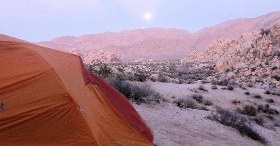 Jetzt kommt Wehmut auf: Hätten wir vielleicht doch nicht umdisponieren sollen und weiter hier bleiben? Der Vorteil, die Tour zum Grand Canyon auf zwei Tage aufzuteilen, liegt aber auf der Hand: Wir haben morgen früh wesentlich mehr Zeit, das Zelt in Ruhe abzubauen und das Equipment zu reinigen und übermorgen werden wir deutlich früher am Grand Canyon ankommen, und haben dadurch mehr von ihm. Was aber zunächst stört ist, dass ich im Zeitraffer einen Sonnenuntergang und Mondaufgang festhakten möchte, dafür eine höherliegende Position auf unserer Campsite ausgesucht habe und dennoch einige Menschen mitten durch das Bild laufen. Aber das lässt sich verschmerzen. Und so geht ein lauwarmer und uns sicherlich unvergesslicher Abend langsam zu Ende. Es geht eben doch nichts über einen Abend am Lagerfeuer und einer Nacht im Zelt.....wenn die Temperaturen soweit okay sind. Gute Nacht !