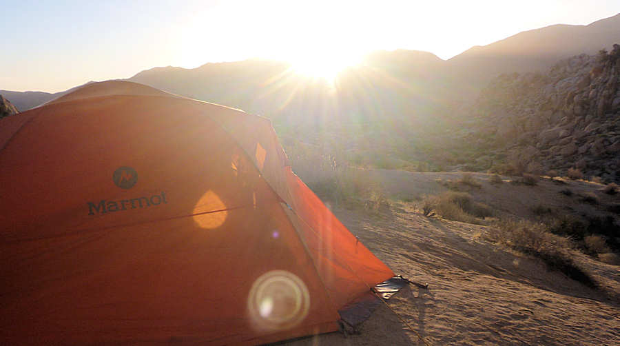 gegenüber einem Zelt. Entspannt wachen wir auf ohne uns aus dem