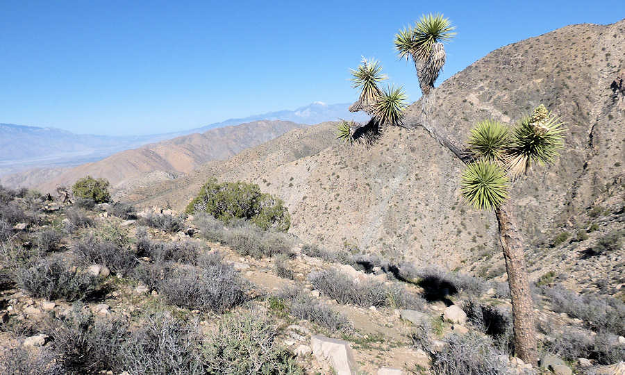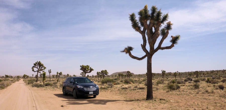 wirklich gerne gemacht hätten hat hier die Vernunft gesiegt. Stattdessen planen wir heute noch etwas leichtes Gelände zu fahren, werden aber zunächst im Walmart in Yucca Valley für das abendliche Grillen und das Lagerfeuer einkaufen. Von hier aus geht es zurück "ins Gelände". In der Parkzeitung finden sich ein paar Trails in unserer Kategorie. Doch zunächst begegnet uns unterwegs der Keys View, der einen schönen Ausblick in die angrenzenden Berge und Täler verspricht.
