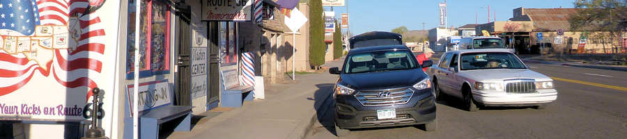 Verdächtig kommt uns ein Wagen hinter uns vor, der bei jedem unserer Fotostopps zunächst anhält und dann beim Losfahren wieder aufschließt. Schließlich bleibt der Wagen parallel zu uns mitten auf der Straße stehen und eine Amerikanerin fragt uns zu meiner Überraschung nach dem besten Weg Prescott.