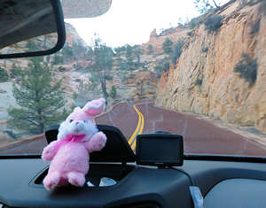 überein. Es ist stark bewölkt, windig und wieder eisig kalt. Mit Optimismus im Gepäck fahren wir dann doch in den Zion,