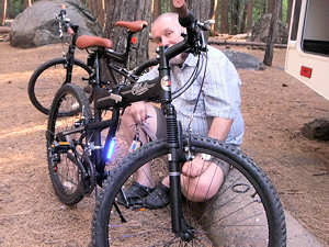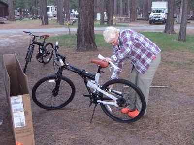 01. Mai 2018: Obwohl wir schon um 6Uhr wach sind warten wir mit der Abfahrt zunächst mal bis 8 Uhr, denn wir wollen dem Little Alien Inn noch eine Chance geben, sich uns gegenüber zu rehabilitieren. Zwar verrät uns das Internet, dass das Restaurant abends bis 10Uhr geöffnet ist und wir aber gestern um 8Uhr schon nichts mehr bekommen haben, aber schließlich bin ich scharf auf irgendwelche Souvenirs, die wir in der nächsten Diashow mit einbauen können. Bei Wikipedia lesen wir, dass die Tankstelle bereits vor über 10 Jahren geschlossen hat. Von daher können wir dankbar sein, gestern doch noch frühzeitig getankt zu haben, da wir ansonsten jetzt ein echtes Problem hätten. Außerdem lesen wir, weshalb Rachel Rachel heißt, was recht interessant ist. Nämlich.........ach, lest doch selbst bei Wikipedia nach. Ich nutze die Zeit bis 8 Uhr um noch einige Fotos der Untertasse und von Aliens zu machen. ![]() Leider haben wir kein Thermometer dabei aber das Näschen verrät mir, dass es lausig kalt ist. Wir haben sogar heute Morgen für die Morgentoilette die Heizung angemacht. Der Witz ist aber, dass die Heizung den Wohnbereich und das Schlafzimmer gut aufwärmt, der Auslasskanal im Badezimmer jedoch kläglich versagt. Um 8:10Uhr gehen wir in Richtung Restaurant und das Schild im Fenster stimmt uns schon ein wenig gnädig: Die Öffnungszeiten des Restaurants sind -abweichend von den Daten im Internet- tatsächlich von 8Uhr bis 20Uhr, also war die gestrige wortkarge Aussage "Closed" korrekt. Wir werden sogar relativ freundlich begrüßt und dürfen Frühstück bestellen. Die Preise sind etwas über Denny´s oder vergleichbaren Restaurants, gehen aber aus unserer Sicht aufgrund der ungewöhnlichen Lage des Restaurants ohne jegliche Infrastruktur in Ordnung. Überhaupt stellen wir uns die Frage, wie viele Meilen die Menschen hier zum Einkaufen bewältigen müssen und wie oft kaufen sie ein und.....sind die Eier auf unseren Tellern überhaupt frisch? Der Ton der Mitarbeiterin pendelt immer wieder zwischen ruppig und nett und wir kommen zu dem Schluss: Ist okay! Was wir allerdings überhaupt nicht finden ist ein geeignetes Souvenir. Je länger ich suche desto niedriger werden meine Ansprüche bezüglich Geschmack und Originalität aber dennoch werden wir nicht fündig. Tassen haben wir schon regalweise, bedruckte T-Shirts ziehen wir in der Regel sowieso nicht an und was uns wirklich gefällt (ein illuminiertes Bild von Rachel mit UFOs) ist unverkäuflich. Wir entscheiden uns gegen einen unsinnigen Kauf und steigen in unser mobiles Haus. Heute liegt ein reiner Fahrtag vor uns und wir werden erst gegen Spätnachmittag unser heutiges Tagesziel erreichen. Anita setzt sich hinter das Steuer und lässt sich kaum noch von dem Platz vorne links weglocken. Immer wieder stelle ich ihr die Frage, ob ich mal wieder fahren soll aber ihr "Willst du unbedingt?" und das dazugehörende Gesicht lassen erkennen, dass ich keine Chance habe. Dem auf dem Platz vorne rechts Sitzenden bleibt nur die Aufgabe, gelegentlich Kaffee oder Kaltgetränke zu reichen, CDs einzuwerfen oder mal das Navi einzustellen. Nach über 300 Meilen übernehme ich dann für die letzten 30 Meilen das Steuer und es klingt wie ein Witz: Während Anita 300 Meilen von wenigen langgestreckten Kurven mehr oder weniger nur geradeaus gefahren ist werde ich jetzt mit dem Wohnmobil auf den wenigen Meilen richtig gefordert: Enge Kurven, ein steiler Bergpass, zwei Baustellen, in denen man auf eine engere Spur wechseln muss und ein steiler Abstieg. Gegen 16Uhr erreichen wir unser Tagesziel Campground by the Lake in dem Ort South Lake Tahoe in Kalifornien. Der Campground, seinem Namen folgend, liegt in Sichtweite des Sees und bildet ein schönes Panorama, leider liegt eine vielbefahrene Straße zwischen uns. Dennoch hat Anita hier einer der schönsten Campsites im Vorfeld reserviert. Wir stehen mitten im Wald am Beginn der Loop und die beiden Nachbar-Sites scheinen zumindest diese Nacht nicht belegt zu sein. Direkt neben unserer Site verläuft ein Fahrradweg und das erinnert uns, noch schnell die Fahrräder zu montieren, aber das erweist sich als ein Unterfangen. Die ersten Bauteile zu montieren ist ein Kinderspiel, doch dann geht es darum, das Vorderrad einzubauen und hier sind wir beide -auch wenn wir uns jetzt blamieren- überfordert. Ich habe schon häufiger Vorderräder eingebaut bzw. einbauen müssen aber hiermit kommen wir beide nicht klar. Uns fehlt das Werkzeug, was wir benötigen, um die Schrauben an der Nabe zu lösen um anschließend die Vordergabeln einzusetzen. Obwohl wir unsere Werkstatt etwas in die Sonne verlegt haben ist es so kalt, dass wir es nach einer guten halben Stunde vorziehen, die Werkstatt in das Wohnmobil zu verlagern. Sorgsam achten wir darauf, alles abzudecken, damit kein Schmutz reinkommt. Überhaupt gehen wir mit dem Wagen schon seit dem ersten Mal mit einem Wohnmobil sehr sorgsam um: Das Betreten des Fahrzeugs -von der Fahrerkabine einmal abgesehen- mit Schuhen verstößt gegen unsere strengen Regeln und im Eingangsbereich liegt eine schmutzabsorbierende Matte, so dass wir im "Häuschen" stets auf Strümpfen oder barfuß laufen können. Einer Freundin von uns werden jetzt bei diesen Zeilen aufgrund von vermuteten "Eumeln" die Nackenhaare hochgehen :-) Zurück zu unserer Baustelle. Selbst die Bedienungsanleitung hilft uns nicht weiter bis uns nach Stunden (und das ist jetzt nicht übertrieben) eine mögliche Lösung dämmert, nachdem wir im Karton eine "Quick Release" finden, also eine Schnellspanneinrichtung. Uns war gar nicht bewusst, dass unsere Räder mit diesem Feature ausgestattet sind. Und dann geht es richtig schnell: Vorderrad einbauen, Bremsen montieren und justieren, alle Schrauben nachstellen und jetzt fehlt nur noch das Aufpumpen der Reifen. Das machen wir morgen. Ebenso das Montieren der Reflektoren. ![]() Während wir für das erste Rad gut zwei Stunden benötigen, ist das zweite Rad in ca. 20 Minuten ferti
