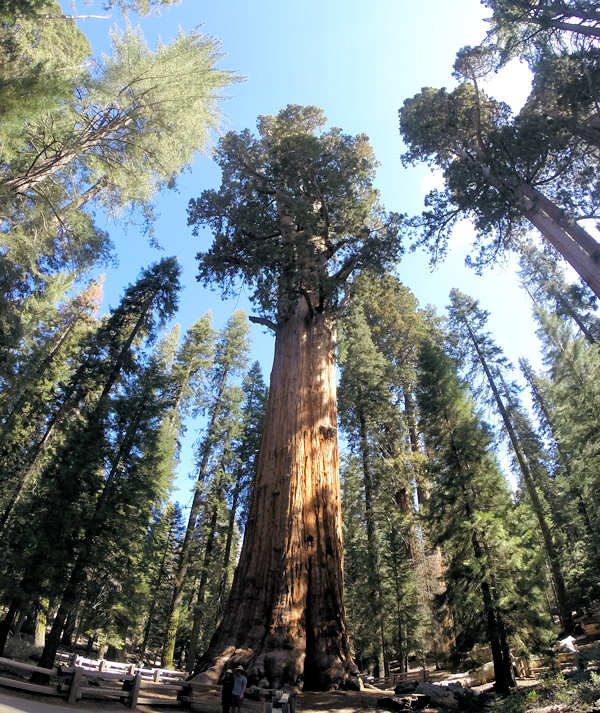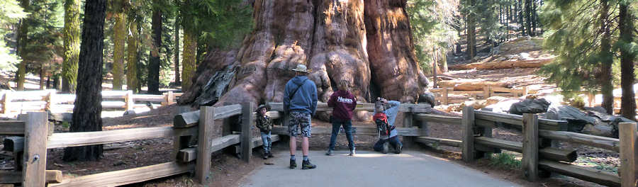 12.Mai 2018: Gestern Abend und heute Nacht gibt es noch Dinge, die es zu berichten gilt. Zunächst habe ich gestern in Ruhe nochmal die Zeitung durchgelesen und entdecken müssen, dass hier im Park ALLE(!) Lebensmittel in die Bären-Container verschlossen werden müssen. Das ist deutlich rigider als im Yosemite. Nun können wir weder den Inhalt des Kühlschranks geschweige denn den Kühlschrank komplett im Container verstauen aber dennoch sperrten wir alles -vom Inhalt des Kühlschranks einmal abgesehen- an Lebensmitteln ein. Uns außerdem sind wir diese Nacht zweimal vom Regen erwacht, der kräftig auf unser Autodach prasselte. Anita sind die zwei Campingstühle eingefallen, die noch von unserem gestrigen Lagerfeuer dort standen, aber die werden schon wieder trocken. Um 6Uhr gehen die Wecker und noch vor 7 Uhr geht es vom Campground runter in Richtung des General Highways, der uns im Laufe des Vormittags zum General Sherman Tree führten soll. Was das ist? Ich komme noch darauf zu sprechen. Vorab: Es ist das größte lebende Ding der Welt! Wir fahren deswegen so früh los, weil wir heute an einem Samstag mit deutlich mehr Verkehr rechnen und der dortige Parkplatz dann sicherlich recht voll sein wird. Wieder nehmen wir die Abkürzung, die sich allerdings später als geringfügig länger herausstellen wird, über Hume Lake um noch einmal den mit Goldstaub versetzten Sprit zu tanken. Der Schnorchel schaltet sich bei $88,88 aus, d.h. eigentlich schon ein paar Cent früher, aber Anita spielt gerne mit Zahlen. Statt wie gestern umzudrehen fahren wir weiter in südliche Richtung um dann nach einigen Meilen wieder auf den Generals Highway zu gelangen. Eine weitere Tankstelle gibt es nach einigen Meilen in Stony Creek Village. Hier ist der Sprit ca. 40 Cent teurer als sonst aber immer noch 70Cent billiger als in Hume Lake. Da haben wir wohl aufs falsche Pferd gesetzt. Gegen 9:30Uhr etwa erreichen wir den RV-Parkplatz vom General Sherman Tree. Und obwohl wir auf einem besonders ausgewiesenen RV-Parkplatz stehen ist unser Wagen so lang, dass wir -würden wir ordnungsgemäß in der eingezeichneten Parktasche parken - andere große RVs beim Durchfahren behindern würden. Im Sommer werden es genau 25 Jahre, dass wir erstmalig und bisher auch letztmalig hier waren und mittlerweile gibt es zwei groß ausgebaute Parkplätze. Damals hielt man -wenn man Platz gefunden hat- auf der Straße und ging dann ein kurzes Stück hoch zum General Sherman Tree. Heute ist es umgekehrt: Man geht ein gutes Stück hinunter. Doch jetzt möchten wir das Geheimnis lüften: Der General Sherman Tree ist der gigantiste Baum der Welt und damit das größte lebendige Ding auf der Erde. ![]() Es gibt Bäume, die höher sind (z.B. die vor paar Tagen gesehenen Redwoods an der Küste) und auch einige, die einen größeren Stammumfang haben. Dennoch ist der General Sherman Tree der Baum, der das meiste Volumen aufbringt. Wir sind immer davon ausgegangen, dass er bereits "ausgewachsen" sei aber heute erfahren wir, dass er jährlich so viel Holz entwickelt, wie ein etwa 20 Meter hoher Baum üblicher Größe. D.h. seit unserem letzten Besuch ist seine Masse um etwa 25 20-Meter-Bäume gewachsen. Über 3.000Jahre alt können diese Sequoias werden und der General Sherman Tree wird auf ca. 2.200Jahre geschätzt. Sieht man hoch zur Krone dann erweckt es den Eindruck, ein Teil sei gestutzt oder abgefallen. Eine Erklärung hierfür findet sich nicht. Aber wie dem auch sei, er scheint zur Seite hin eine neue Krone herauszubilden. Seine Abmessungen im Bild zu verdeutlichen ist schwer und noch schwerer ist es, den Baum in seiner Gänze zu fotografieren. ![]() Das ist nur mit einem Super-Weitwinkel zu schaffen (GoPro) ![]() Aber hier einige Daten, wobei die Amerikaner zu meiner Freude immer Ideen haben, wie man sich das besser vorstellen kann Höhe: 92Meter * Volumen: 1486m³ ** Durchmesser: 11 Meter (Stamm, unten)*** *Schauen wir als Erwachsener nach oben zur Krone so ist das dasselbe Verhältnis, als würde eine Maus zu einem 1,80Meter hohen Menschen hochschauen **Würden wir das Volumen des Baumes mit Wasser füllen so hätten wir etwa 9.800 Badewannen voll Wasser. Würden wir jeden Tag ein Vollbad nehmen reicht das für 27 Jahre. ***Der mit Kopfsteinen belegte Boden entspricht genau 1:1 dem Durchmesser des General Sherman Trees am unteren Stamm und zeigt im Verhältnis zur Anita recht beeindruckend die Größe ![]() Wir laufen noch ein wenig rum und gehen dann doch ziemlich flott zurück zum Auto, denn es ist hier richtig kalt aufgrund der Höhe (ca.2.000Meter) und der vielen Schatten. Wir zwei sind einige der wenigen Besucher, die in kurzen Hosen rumlaufen. Im Gegensatz dazu begegnen uns aber auch andere Besucher, die mit Mütze und Handschuhen sich wohl auf eine Expedition begeben wollen. Auf dem Parkplatz schütteln wir dann nur mit den Köpfen. Hatten wir doch unser Wohnmobil extra längs gestellt, damit wir niemanden bei der Durchfahrt behindern, hat sich ein weiteres Wohnmobil quer gestellt und zwar genau an der engsten Stelle. Ist das jetzt Egoismus "Hoppla, jetzt komme ich" oder eher Dummheit? Wir chauffieren unser Gefährt jedoch raus und machen uns auf den Heimweg. Bei Stony Creek Village halten wir kurz. Weniger um zu tanken aber gerne hätten wir Propan aufgefüllt, denn das Panel (Ach ja, das Panel, was mag es uns anzeigen und was mag es bedeuten?) zeigt seit heute morgen rot, d.h. nur noch max. 1/3. Dann müssen wir ggf. Gas sparen, doch das ist nicht so einfach. Der Kühlschrank, die Heizung und der Warmwasser-Boiler für die Dusche laufen auf Gas und wenn das leer läuft, werden a) die Lebensmittel warm, b) unsere Füße hingegen eiskalt und c) die Menschen um uns herum wahren mit zugehaltener Nase Distanz. Aber hier gibt es kein Gas, dafür aber Free WiFi und das heißt, dass wir nach etwa 6 Tagen kurzfristig wieder an die Zivilisation anknüpfen können. Aber mal genau betrachtet stellen wir gemeinsam fest, dass mal so eine 