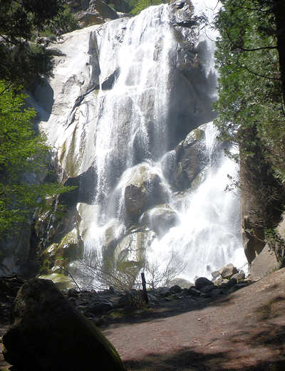 07.Mai 2018: Das Aufstehen um 6Uhr fällt uns heute beiden sehr schwer, denn gestern ist es noch bis nach Mitternacht gegangen bis wir endlich im Bett waren. Wieso? Es gab technische Probleme. Unsere bei Walmart gekaufte externe Festplatte als zusätzliche Sicherung unserer Bilder begann zu spinnen und wollte nicht mehr so wie wir. Parallel dazu erwies sich das Internet vermutlich aufgrund von Überlastung so langsam, dass es uns nicht möglich war, den aktuellen Bericht hochzuspielen. Nach Mitternacht hatten wir dann die Technik wieder im Griff und nicht umgekehrt. Mit kleinen Äugeleins verlassen wir um 8 Uhr den Campground, der uns -mit Ausnahme des langsamen Internets- sicherlich auch in recht guter Erinnerung bleiben wird. Bis eben haben wir noch ernsthaft überlegt, unsere Route mal wieder zu ändern, da die Temperaturen im Yosemite in den nächsten Tagen hinter unseren Erwartungen zurückbleiben werden. Die möglichen Alternativen waren Moab, Grand Canyon, Valley Of Fire und Zion aber erstens wäre es eine weitere intensive "Gurkerei" (= Fahrerei) von etwa 600 bis 800 Meilen gewesen und zweitens war es kaum möglich, geeignete Campsites zu finden. Unser Anspruch diesbezüglich ist ja mittlerweile nicht allzu gering. Anita hat die heutige ursprüngliche Route von 150 Meilen auf etwa 170 Meilen zugunsten eines Walmarts verlängert. Was kaufen wir denn eigentlich immer so ein? Neben dem Auffüllen von Getränken und Grillgut und weiteren Utensilien diesmal auch Schrauben für das Bett. Das Navi scheint unser Schimpfen am ersten Tag unseres Urlaubs über die monotone Landschaft gehört zu haben und präsentiert heute eine ausgefeilte Route, auf der wir alle paar Minuten mal links und dann wieder rechts und dann wieder links abbiegen müssen. Und sie führt durch riesige Weinanbaugebiete. ![]() Anita meint, wir könnten ja Glück haben und zufällig durch unsere favorisierten Weine durchfahren, also Gallo und Barefoot. Ich weise auf die Gefahr hin, dass wir dann sicherlich zu einer Weinprobe einkehren und daraufhin nicht mehr unser Tagesziel erreichen, bzw. vielleicht gar nicht mehr erst finden. ![]() Langsam nähern wir dem Yosemite und die Landschaft nimmt zunehmend die von uns gewohnte Form ein, wobei wir hier betonen müssen, dass uns die Landschaft in den letzten Tagen auch zugesagt hat. ![]() Die Temperatur nimmt ebenfalls zunehmen an Fahrt auf, wobei das relativ zu den Vortagen gesehen werden muss. Die heutigen 26 Grad im Vergleich zu den Tagen zuvor lassen uns direkt schwitzen. Am Parkeingang erstehen wir für $80 den Annual Pass, der nun wieder ein Jahr gültig ist. Vielleicht ist das noch ein günstiger Zeitpunkt, denn in den Nachrichten hörten wir, dass die Preise für die Nationalparks evtl. schon im Juni um rund 30% steigen könnten. ![]() Wir steuern den für die nächsten vier Tage reservierten Upper Pine Campground an, auf dem wir die Campsite 210 gebucht haben. Am Eingang zum Campground werden uns vom Ranger zunächst minutenlang die Regeln erklärt und die sind nicht ohne: Da wir uns in einem aktiven Bärengebiet aufhalten, müssen sämtliche Lebensmittel entweder in den sog. Storages, die es auf jeder Campsite gibt, deponiert werden oder bei den Wohnmobilen auch innen im Wagen, Nicht jedoch in den von außen zugänglichen Staufächern und auch nirgends im Auto, was der Bär von außen sehen könnte. Überhaupt soll vorne die Fahrerkabine frei von jeglichem Material sein, das das Interesse des Bären wecken könnte. Jegliche Lebensmittel müssen während des Kochens oder des Essens maximal eine Armlänge entfernt sein. (Wir in Köln haben von unserer Oberbürgermeisterin vor zwei Jahren hingegen gelernt, dass man immer eine Armlänge Abstand halten sollte. Doch das hatte nichts mit Essen zu tun) Nach dem Briefing suchen wir unsere Campsite auf und die hat es im positiven Sinne in sich. ![]() Von allen Campsites scheinen wir die größte und vielleicht auch beste zu haben: Sie liegt in der Außenrunde des Campgrounds, mitten im Wald und ist richtig idyllisch. Obwohl ich immer rumalbere, dass ich in Bärengebieten lieber eine Campsite in der Mitte möchte, da vermutlich zuerst die äußeren einem Bärengriff zum Opfer fallen, bin ich rundherum zufrieden. Gäbe es jetzt noch Strom usw. wäre das Glück perfekt. Zunächst verstauen wir alle Lebensmittel in das Wageninnere und sorgen dafür, dass es von draußen nichts zu sehen gibt, was für einen Bären von Interesse sein könnte. Als Anita sogar das Navi ausbaut weise ich darauf hin, dass ich davon ausgehe, dass der Bär sich hier auskennt.... Mit dem Shuttle, der nur zwei Gehminuten von unserer Campsite entfernt hält, fahren wir zu, Yosemite Village. Auf dem Weg fällt uns auf, dass die Wasserfälle im Moment besonders viel Wasser führen, was wir auf die Schneeschmelze zurückführen. ![]() Im Yosemite Village angekommen erkundigen wir uns nach dem Wetter, was viel Sonne verspricht, ärgern uns aber darüber, dass es das hervorragend sortierte Sportgeschäft nicht mehr gibt und fahren mit dem Shuttle weiter zur Yosemite Valley Lodge. Sollte der Name einem Leser neu vorkommen so ist das nicht verwunderlich, denn es hat mehrere Namensveränderungen gegeben: The Majestic Yosemite Hotel (ehemals The Ahwahnee Hotel) Yosemite Valley Lodge (ehemals Yosemite Lodge) Half Dome Village (ehemals Currey Village) Yosemite Conversation Heritage Center (ehemals Le Conte Memorial Lodge) Leider ist uns der Grund für die neuen Namen noch nicht bekannt. Auf jeden Fall ist alles noch am selben Ort und so buchen wir für übermorgen einen Shuttle, der uns zum Glacier Point, von wo aus wir erstmalig die 4 Meilen-Wanderung ins Tal machen wollen. Es gäbe alternativ auch die von uns bereits mehrmals erlaufene 8-Meilen-Tour, aber die ist im Moment leider nicht machbar. Der Shuttle fährt uns zurück zum Campground, wo wir beide unseren üblichen Tätigkeiten nachgehen: Anita grillt -nun schon zum zweiten mal draußen(!) - und ich bastel an 