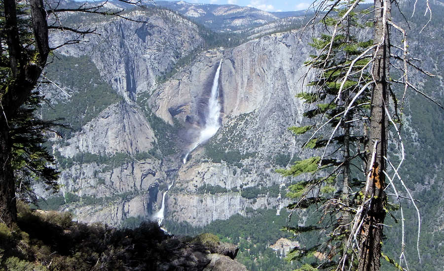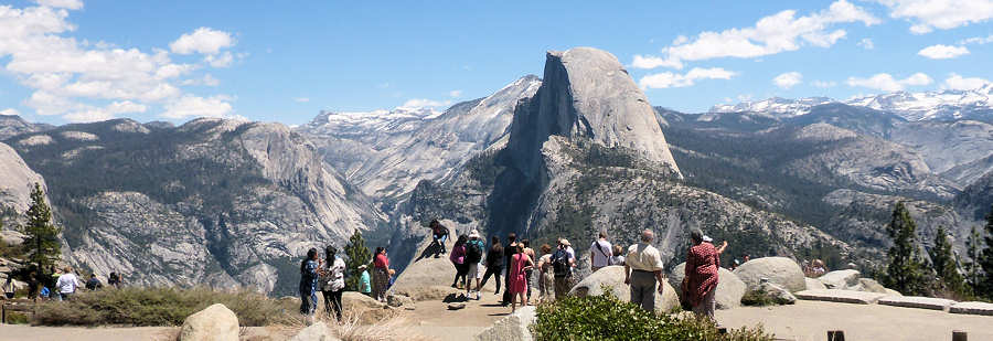 09.Mai 2018: "Bloß nicht verschlafen", heißt es heute morgen, und obwohl noch viel Zeit ist rasseln unsere Handys ab 6 Uhr im viertelstündigen Rhythmus. Wir verzichten sogar auf unser tägliches Frühstück, das aus einem Brötchen besteht, und verlassen um 8Uhr den Campground zu Fuß, um mit dem Shuttle zur Yosemite Valley Lodge zu fahren, um dort zu Frühstücken. Ein All American Breakfast liegt bei $10, was im üblichen Rahmen für einen National Park ist. Erstaunt und angenehm überrascht sind wir dann aber doch über die recht üppige Portionsgröße. Um 9:45Uhr stellen wir uns dann für den Bus zum Glacier Point an, für den wir vorgestern zwei Karten erworben haben. ![]() Ich hatte irgendwie im Kopf, dass wir mit einem Kleinbus mit 10-12 Leuten hochgefahren werden, so wie wir das vom Zion oder Grand Canyon her kennen aber Anita erinnert sich, dass es auch damals schon ein richtiger Reisebus war und der kommt gerade um die Ecke. Um 10Uhr starten wir und die Begrüßung des Busfahrers "Willkommen zu der etwa 4 bis 5 stündigen Tour" halte ich zunächst für einen Joke, aber tatsächlich werden wir mit einer knapp zweistündigen Fahrt zum Glacier Point überrascht. ![]() Nicht unbedingt zu unserer Freude, denn eigentlich wollen wir nur schnell hoch zum Trailhead um hier mit unserem Hike zu starten, stattdessen erhalten wir eine umfangreiche Sightseeing-Tour. Damit relativieren sich natürlich auch die $27 pro Person. Der Busfahrer erzählt und erzählt und sicherlich auch hoch interessante Fakten über den Yosemite und dennoch müssen wir beide dagegen ankämpfen, nicht gleich einzuschlafen. Zum Glück werden unsere zugefallenen Lider durch die Sonnenbrillen verdeckt. Interessant ist, dass die letzten 16 Meilen für Fahrzeuge über 30Feet Länge verboten sind und wir mit unserem Schiff somit gerade noch hätten durchfahren dürfen. Ob auch "können" weiß ich nicht, denn die Kurven sind sehr eng und der Reisebus, der deutlich länger als 30Feet lang ist und eine Sondergenehmigung hat, kämpft Kurve für Kurve gegen entgegenkommende Wagen. Oben angekommen zeigt der Glacier Point seine Schönheit. Von hier aus hat man einen hervorragenden Blick auf unseren Lieblingsberg, den Half Dome, den wir vor paar Jahren im zweiten Anlauf in einer Dreitages-Tour bezwungen haben. ![]() Er ist ebenso markant wie berühmt und die Firma "The North Face" hat ihn vor vielen Jahren als Vorlage für ihr stilisiertes Logo genommen. ![]() Für heute haben wir uns als Hike für den 4-Mile-Trail entschieden, der uns runter ins Tal bringen soll. Alternativ gibt es den 8 Meilen langen Panorama-Trail, den wir bereits mehrmals erlaufen sind aber aufgrund meines momentanen Handicaps im Fuß halten wir den Ball mal flach und nehmen den 4-Miles-Trail, der übrigens NICHT 4 Meilen lang ist sondern 4,8 Meilen, also schon fast ein 5-Miles-Trail wäre. Und er ist nicht ohne: Auf 4,4 von 4,8 Meilen geht er über 1000Meter in die Tiefe, d.h. er ist auf vergleichbarer Länge steiler als der legendäre Bright-Angel-Trail am Grand Canyon. Und er geht nach kurzer Zeit bereits recht steil nach unten. Wir entdecken auf der ersten Meile auf der Schattenseite sogar noch einige Schneefelder ![]() und beim Anblick des Schnees fällt uns ein, dass wir eben im Halbschlaf vom Busfahrer hörten, dass die Straße hoch zum Glacier Point auch gerade erst eine Woche wieder geöffnet ist. Lediglich einzelne Wolken am Himmel lassen die Sonne mal kurz ausruhen, ansonsten ist herrlichster Sonnenschein bei angenehmen Temperaturen, so dass dieser Hike wirklich phantastisch sein könnte, würde er nicht zu steil abwärts gehen. Anita verdreht sich irgendwann einmal den Fuß und so bilden wir zwei schon fast das Invaliden-Duo, beide etwas humpelnd aber voller Ehrgeiz. ![]() Der Abstieg geht etwas "um die Ecke" und statt auf den Half Dome und den Nevada Fall tauchen nun die beiden übereinander liegenden Upper Yosemite Fall und der Lower Yosemite Fall auf der gegenüberliegenden Wand auf. Wir haben noch etwas vom Busfahrer gelernt: Der Upper Yosemite Fall, also der obere von den beiden, ist der größte Wasserfall Amerikas und zugleich auch der zweithöchste weltweit. ![]() So verlockend die Gegend und das Wetter auch ist, beides lenkt uns nur zeitweise davon ab, dass der Hike langsam etwas zur Qual wird. Aber alles Jammern hilft nichts, denn nach oben zurück ist keine Option also bleibt nur weitergehen und durchhalten, und das machen wir auch ganz tapfer. ![]() Etwa eine Meile vor dem Trailende wartet dann noch eine Überraschung auf uns: Eine Klapperschlange liegt quer über dem Weg und stellt uns vor ein kleines Problem, wie wir denn weiterkommen sollen. ![]() Es handelt sich um eine kleine bzw. vermutlich junge Klapperschlange und folgende Weisheiten haben wir von Rangern bisher gelernt: 1.) Junge Klapperschlangen sind eigentlich nicht ganz so gefährlich, weil sie noch nicht so viel Gift produziert haben. 2.) Junge Klapperschlangen sind unerfahren und daher aggressiver, weil sie eher alles angreifen als erfahrene Klapperschlangen. 3.) Im Frühjahr tragen Klapperschlangen noch mehr Gift in sich als im Herbst. Was sagt uns das jetzt? Nichts! Denn wissen wir, ob sie wirklich jung ist? Und wenn sie jung ist: Wie sollen wir ihr Benehmen beibringen, dass sie nicht in alles beißt, was sich bewegt? Wir beschäftigen uns zunächst mit dem Fotografieren und dann nimmt sie doch die für Klapperschlangen typische Angriffstellung ein, indem sie sich zusammenrollt aber kurz danach schon verkriecht sie sich in die Büsche und macht den Weg für uns frei. Nach etwa 3,5 Stunden kommen wir unten etwas schmerverzerrt an. Das ist keine wirklich gute Zeit aber unser GPS sagt uns, dass wir über eine Stunde davon gestanden sind, vermutlich wegen Fotos oder einer kurzen Rast. Das relativiert unsere Zeit etwas. Von unseren bisherigen Hikes sind wir es gewohnt, dass wir am Trailhead ankommen und wir dann entweder ins Auto oder in einen Shuttle steigen können, d