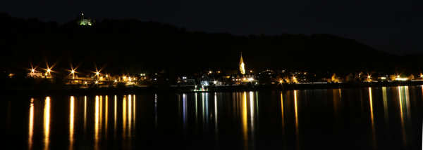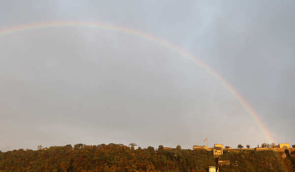 Heute stehen 434 km bis nach Koblenz auf der ToDo-Liste. Und deshalb starten wir diesmal, erstmalig in diesem Urlaub, noch vor der Sonne. ![]() Die meiste Zeit geht es über die Autobahn, bis wir dann ab Bingen die wesentlich schönere Strecke am Rhein entlang wählen. Je weiter wir uns aus dem Süden in Richtung Westen bewegt haben, desto schlechter wird das Wetter. Der Campingplatz liegt gegenüber dem Deutschen Eck genau an der Stelle, an der die Mosel in den Rhein fließt. Den Campingplatz findet man nicht per Zufall am Wegesrand, vielmehr muss man ihn gezielt suchen und anfahren. Wir haben einen Platz direkt am Rhein/Mosel und die Sicht ist schon toll. Entgegen dem Campingplatz Sonneneck zu Beginn unseres Urlaubs stehen die Camper hier nicht mit der Seite zum Fluss sondern jeweils mit der Schnauze oder dem Heck des Fahrzeugs. Konsequenz: Man bekommt deutlich mehr Plätze zum Vermieten hin. Ein Nachteil auf diesem Platz: Die Stromanschlüsse sind nicht direkt am Stellplatz. Wir haben zwar eine Kabeltrommel, aber die reicht nicht für die Distanz zwischen Camper und Stromanschluss. Also müssen wir versuchen, den Wagen noch einen Meter weiter ran zu platzieren und auch jetzt ist das Kabel ziemlich gespannt. Eigentlich eine Unverschämtheit. Das Wetter spielt nicht mit: Es regnet wie aus Kübeln. Gegen 17:00 Uhr gehen wir dann in das Campingplatz-Restaurant. Obwohl wir nicht reserviert haben erhaschen wir noch einen Platz und sind erstaunt, dass ein Campingplatz schon wieder ein solch ansprechendes Restaurant hat. Für uns beide gibt es mal wieder Schnitzel mit Beilage. Überhaupt hegen wir den Verdacht, dass Schnitzel, egal ob Wiener Art, Jäger oder Paprika, ein Muss in jedem Campingplatzrestaurant ist. Und diese Restaurants scheinen ihr Geschäft zu verstehen, denn bisher sind wir kulinarisch noch nie enttäuscht worden. Zurück zum Camper geht es noch im Regen und kurz darauf beginnt sich die Sonne zu senken und die Wolken Lücken zu bekommen. Und plötzlich haben wir noch einen tollen und völlig unerwarteten Tagesausklang. ![]() Sogar ein 180Grad Regenbogen wacht für einige Zeit über unseren Campingplatz. ![]() |