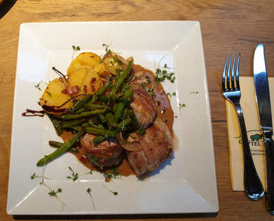 weltberühmten Eibsee zu machen. Doch leider müssen wir noch vor der Hälfte umkehren, da der Rundweg derzeit von Montag bis Freitag wegen Reperaturarbeiten gesperrt ist. Wir beeilen uns und legen einen strammen Schritt hin um den Bus zum Campingplatz noch zu bekommen. Es fehlen nur etwa 10 Sekunden, denn wenige Meter vor dem Ziel -und ich rede hier von etwa 15 Metern- fährt der Bus ab. Anita ist überzeugt, dass der Busfahrer zu uns rüber geschaut hat und uns gesehen haben muss. So sind die Bayern halt, wenn sie Preussen ärgern können. :-) Also warten wir eine Stunde und fahren erst dann endlich zurück zum Campingplatz. Und dort gehen wir in die Sauna. Tatsächlich, dieser 5-Sterne-Campingplatz hat eine Sauna und aufgrund der Corona-Hygieneregeln sind wir mal gespannt, wie das umgesetzt wird. Wir sind richtig angetan: Wir mussten uns gestern für eine bestimmte Zeit anmelden mit der Angabe, ob wir in die 65 Grad Biosana oder in die 85 Grad finnische Sauna möchten. Die kleinere Biosana ist tatsächlich nur mit einem Paar belegt und die von uns gewählte finnische und deutlich größere Sauna mit zwei Paaren. Die Anlage ist unerwartet groß und von der Sauna aus hat man einen Blick in das Berg-Panorama. Leider steht uns die Sauna nur eine Stunde zu Verfügung, denn dann kommt die nächste Schicht. Nach der Sauna gehen wir im Biergarten des Campingplatzes essen. Montag und Dienstag sind Grillabende und in sehr gemütlicher Runde und einer besonders freundlichen Bedienung genießen wir bei einem Glas Rotwein unser frisch gegrilltes Abendessen. Anita entscheidet sich für Pute und Ofenkartoffel und ich für einen Grillteller, bestehend aus einem Steak, Grillkäse und einer Wurst. Im Camper lassen wir diesen ereignisreichen Abend bei einer schönen Tasse Kaffee ausklingen. Gute Nacht! |