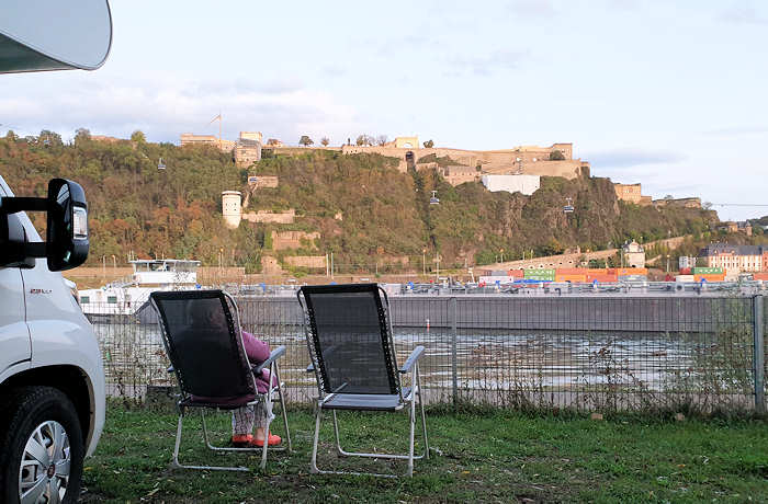 etwas windig aber trocken und nur leicht bewölkt. Es dauert eine ganze Zeit, aber so etwa gegen 9:00 Uhr oder 10:00 Uhr reißt der Himmel doch auf und schnell machen wir uns auf die Socken bzw. Räder. Die Entscheidung, etwas am Rhein oder etwas an der Mosel entlang zu fahren, ist heute zu Gunsten des Nebenflusses gefallen. Da es auf der rechten Moselseite (östliches Ufer) keinen vernünftigen Radweg im weiteren Verlauf gibt, entscheiden wir uns für das linke Moselufer (westliches Ufer). Sonst wechseln wir auf unseren Radeltouren immer über die Gülserbrücke von der rechten auf die linke Seite, heute sind wir schon auf der richtigen Seite und erfahren dadurch einen kleinen Abschnitt des Weges, den wir noch nie gefahren sind. Es ist tatsächlich windig, leider oftmals Gegenwind aber sobald die Wolken eine Lücke lassen sind wir doch erstaunt, wie viel Kraft die Oktobersonne noch hat. In Winningen, einem Dorf, durch das wir sonst nur durchrasen, na ja "durchradeln", kehren wir in ein nettes Weinlokal ein. Wein und Fahrrad ist für uns ein NoGo, so dass es eben Kaffee gibt. Wir entscheiden uns von hier aus zurückzufahren und zwar, nicht wie sonst auf dem durchaus schöneren aber auch anstrengenderen Fahrradweg entlang der Weinberge, sondern unten am Ufer an der Straße entlang. Auch dieser Abschnitt ist für uns völlig neu. Über die Gülser Brücke wechseln wir die Moselseite und nach wenigen Minuten kommen wir an unserem alten Stammhotel Contel Koblenz vorbei. Der empfehlenswerte Biergarten ist leider geschlossen, obwohl er derzeit wohl noch betrieben wird. Stattdessen gehen wir ins Restaurant für eine Tasse Kaffee und entscheiden uns spontan, im Hotel zu saunieren. Aufgrund des Hygienekonzeptes dürfen nur maximal drei Personen in die Saunaanlage. 15,00€ kostet der Eintritt in die Sauna pro Person und nach wie vor vertreten wir die Meinung, dass die Sauna für ein Hotel schon ungewöhnlich groß und gut ist. Nach zwei Stunden radeln wir die nur noch kurze Strecke in Richtung Campingplatz, vorbei bei Netto, um noch eine Kleinigkeit einzukaufen. Zurück auf dem Campingplatz lösen wir das gestrige Versprechen unserem Ober gegenüber ein und gehen wie angekündigt im Campingrestaurant essen. Diesmal gibt es für Anita einen Burger und für mich ein Paprikaschnitzel. Dabei haben wir einen schnuckeligen Platz in der Ecke. Auf unserem Stellplatz holen wir heute nochmals die Campingstühle raus, genießen das Panorama und beobachten, wie sich vor unseren Augen Rhein und Mosel vereinigen. ![]() Morgen geht es in Richtung Köln zurück und wir entscheiden uns, die notwendigen Sortierarbeiten erst morgen zu erledigen. Stattdessen lassen wir die bisherige Zeit mit unserem Camper, erstmalig in Deutschland, Revue passieren und kommen zu dem Schluss: Hier ist es auch schön. ![]() Schade, dass sich der Urlaub bereits langsam zu Ende neigt. |