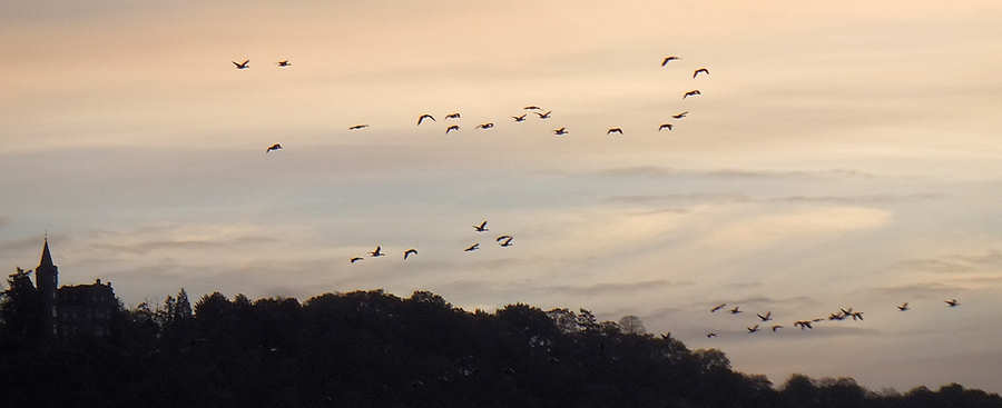 zu erwachen statt daheim zu sein. Dann ergibt sich eine spannende und zugleich beängstigende Stunde, denn wir erhalten auf dem Smartphone einen Alarm aus unserer Wohnung. Doch unser Freund Michael fährt vorbei und beruhigt uns, dass es sich um einen Fehlalarm handelt. Nachdem wir uns beruhigen konnten verlassen wir unseren Camper und stellen fest, dass es kalt und neblig ist: ![]() Das hält uns aber nicht wirklich von unserem Vorhaben ab, nach Boppard zu fahren. Diesmal aber nicht mit unseren Rädern sondern mit.... ![]() Die Haltestelle in Richtung Boppard ist gerade mal 500 Meter vom Campingplatz entfernt und um diese Tageszeit fährt der Bus alle halbe Stunde von hier ab. Während wir warten klingelt das Telefon und der avisierte Campingplatz für morgen in Koblenz teilt uns mit, dass wir morgen kommen dürfen. Zum Hintergrund: Wir haben einen weiteren Campingplatz für die folgenden zwei Tage kontaktiert, der uns jedoch zunächst aufgrund des Beherbergungsverbotes ablehnte. Anita wies die Mitarbeiter dann darauf hin, dass wir nicht direkt aus Köln kommen und dieses Verbot laut Gesundheitsamt daher für uns nicht greift. Außerdem hörten wir gestern Abend in einer Eilmeldung, dass Rheinland-Pfalz vom Beherbergungsverbot zunächst Abstand nimmt. Und gerade hat die Mitarbeiterin von ihrem Chef grünes Licht erhalten, uns morgen aufnehmen zu dürfen. Prima, läuft doch! Die 6 km bis nach Boppard Hauptbahnhof schafft der Bus in gerade mal 6 Minuten. Unser erster Gang ist wieder zum Geldautomaten, denn bekanntermaßen läuft hier Vieles (noch) mit Bargeld. Der Weg geht weiter in Richtung Sessellift, wobei wir aus der Ferne durch den Nebel zwar die Liftanlage sehen, aber noch nicht erkennen können, ob sie um diese Jahreszeit und vor allem bei diesem Wetter überhaupt noch in Betrieb ist. Doch sie ist in Betrieb und wir sind derzeit die einzigen fahrwilligen Gäste. In einer knapp 20minütigen Fahrt geht es hoch. Wir fragen uns gerade, wie oft wir hier bereits hochgefahren aber auch hochgelaufen sind. Dreißig oder vierzig Mal bestimmt, fast immer bei sonnigem bzw. schönem Weiter, sogar einmal bei Regen aber soweit wir uns erinnern können noch nie bei diesen Temperaturen. Es ist ziemlich kalt, lt. Smartphone 7 Grad und weiter oben ist ein Wind, der sich auch von unserer Zwiebelschicht kaum merklich abschrecken lässt. Oben angekommen geht es dann noch 10 Gehminuten (auch hier keine Angabe zur Länge des Weges sondern nur eine Laufzeit) bis zum Gedeonseck. Es gibt zwei Ausflugslokale hier oben. Zunächst das Gedeonseck und paar Minuten weiter der Vierseenblick. Dieser heißt so, weil der Rhein unten die größte Schleife seines Verlaufs schlägt und es dadurch von oben so scheint, als gebe es vier Seen. Wir begnügen uns, wie meist, mit dem Gedeonseck ![]() und sitzen erstmalig seit unserem ersten Besuch Anfang der 80er Jahre drinnen! Bei einem Kännchen Kaffee bzw. Milchkaffee wärmen wir uns für die Talfahrt. In 4 km Entfernung erkennen wir deutlich einer unserer Lieblingshotels, nämlich das Jakobsberg Golf-Resort. Die Entfernung kennen wir genau, da wir uns erst letztes Jahr dort einquartiert hatten und zu Fuß zum Gedeonseck gewandert sind. Zum Glück haben wir auch noch Regenjacken in unseren Rucksäcken,so dass wir kleidungsmäßig noch was draufsetzen können und sich die Talfahrt angenehmer gestaltet als die Bergfahrt. Unten angekommen warten wir auf den Bus zurück zum Sonneneck. ![]() Die Abfahrtszeiten sind übersichtlich und gut zu erkennen, allerdings muss man die Fußnoten genau studieren um festzustellen, wann der Bus nun wirklich und bis wohin fährt. ![]() Zurück auf dem Campingplatz pausieren wir, bis das Restaurant öffnet. Wieder gibt es für mich Schnitzel und Anita weicht aufgrund der üppigen Größe der Portion diesmal lieber auf Gnocchi aus. Nicht nur der Tag geht langsam zu Ende sondern wohl auch das Jahr, denn gestern und auch heute bereiten sich die Gänse auf den weiten Flug in ihr Winterquartier vor und üben daher, wie wir mal gelernt haben, einige Tage vorher schon mal den Formationsflug. ![]() Bis dann, gute Nacht. |