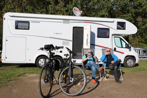 Die hinter uns liegende Nacht war prima: Das Bett ist wirklich gut; Durchgeschlafen und keine Rücken- oder Nackenschmerzen. Weniger gut ist das Wetter, das uns erwartet. Es ist sehr trüb und gelegentlich tröpfelt es etwas. Also frühstücken wir zunächst in aller Ruhe bis das Wetter so wird, wie es der Wetterbericht und das Regenradar verspricht. Gegen Mittag holen wir die Räder aus der Garage, pumpen die Reifen auf und machen uns auf den Weg nach Boppard. Aber zunächst suchen wir noch die Sanitäranlagen des Campingplatzes auf und das ist auch gut so. Denn plötzlich fängt es wieder an zu regnen und erst gegen 15 :00 Uhr ist es trocken, so dass wir endlich losradeln können zum 6km entfernten Boppard. Unser Ziel ist ein Geldautomat, denn auf diesem Platz kann nur bar bezahlt werden und irgendwie haben wir es gestern versäumt, in Köln nochmal zum Automaten zu gehen. Unser zweites Ziel, in Boppard draußen irgendwo einen Kaffee zu trinken, lassen wir sein. Obwohl es nicht mehr regnet ist es recht kühl und in einigen Straßencafés lassen lautstarke Gruppen das Bier und ihr Leben hochleben. Ob das Kegelvereine sind? Die richtige Jahreszeit ist es ja. Wir radeln zurück und jetzt öffnet sich der Himmel und große blaue Flecken machen sich breit. Auf dem Campingplatz angekommen setzen wir uns mit den Stühlen raus und genießen die Sonne und den Ausblick. Obwohl es schon Oktober ist scheint die Sonne noch viel Kraft zu haben und bevor wir uns noch einen Sonnenbrand holen packen wir alles zusammen und gehen Essen. Wo? In der Pizzeria des Campingplatzes. Die kennen wir schon von unseren Fahrradtouren in der Vergangenheit. Unsere Erwartungen werden nicht enttäuscht: Schnitzel bzw. Medaillons nebst Fritten. Es schmeckt köstlich und die Portionen sind wieder reichlich. Unser Nachbar von gestern mit dem Wohnwagen ist einem neuen Nachbarn mit einem noch längeren Wohnwagen gewichen, so dass wir unseren Wagen vorziehen müssen, damit er Platz hat. Unser Wohnmobil passt exakt in die vorgesehenen Markierungen und hätte keine 10cm länger sein dürfen. Wir genießen noch ein wenig, wie sich langsam die Sonne senkt und bald schon verkriechen wir uns in den Bus. Wir räumen noch etwas den Wagen auf, machen uns noch einen Kaffee und dann ist der Tag auch schon zuende. Gute Nacht! ![]() |