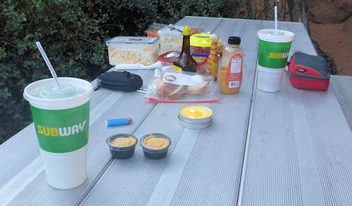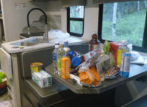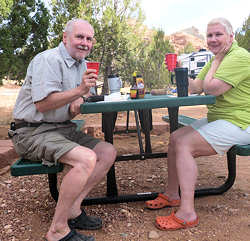 Nach einer Viertel Stunde geben wir auf und fahren zum großen KOA, wo man uns zugleich einen Platz anbietet. Wir erfahren, dass die Laundary mit den Waschmaschinen gerade renoviert wird und falls wir waschen möchten, so mögen wir doch zum kleinen KOA rüber fahren. Wir fühlen uns schon ein bisschen auf den Arm genommen. Nach einiger Zeit fahren wir nochmals kurz zum Storage, da eine Kamera verlustig ist und wir die Hoffnung haben, dass sie versehentlich dort geblieben ist. Sie ist unauffindbar, zumindest im Storage. Sie findet sich im Laufe des Abends im Wohnmobil wieder an. Sie hatte sich in einer der unzähligen Klappen und Fächern des Campers vor uns versteckt. ![]() Nachdem alles bestens vorbereitet ist genießen wir unser Walmart-Essen und lassen den Abend dann wieder, wie gewohnt, bei einer gemütlichen Tasse Kaffee ausklingen. |