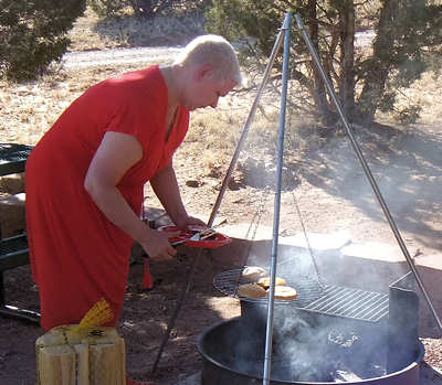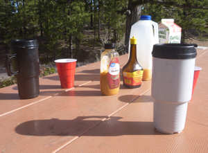 Frühstück draußen auf unserem Tisch rüsten wir uns für den Juniper