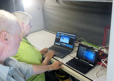 Tage für die Campsite in den Tresor reinzuschmeißen. Gestern hatten wir zunächst noch überlegt, ob wir heute unsere Site gegen die Nachbarsite tauschen wollen, die noch etwas besser ist als unsere. Dann haben wir uns doch dagegen entschieden, denn unsere Site ist absolut plan, d.h. wir benötigen keine Rampen, der Nachbar hingegen schon. So ganz bin ich noch nicht richtig fit, aber dennoch möchte ich gerne heute etwas laufen und vor allem etwas ausprobieren. Im Gegensatz zu Anitas Frühstück, also dem normalen Frühstück von uns, besteht meins nur aus paar Kräckern und etwas Tee. Noch vor der großen Hitze machen wir uns auf den "langen" Hike zu den Cathedral Caves, die wir nach 800 Meter schon erreichen. ![]() Von diesen Caves waren wir vor ein paar Jahren schon begeistert. Durch Erosion sind im Gestein kleine Höhlen bzw. Slot Canyons entstanden. In einige kann man mehrere Meter hineingehen, jedoch immer mit Vorsicht, denn im Schatten dieser Slots verstecken sich gerne Klapperschlangen. ![]() Wenn ich eben davon sprach, dass wir gerne die Zeit vor der Hitze nutzen, dann ist das Unsinn, denn die Sonne brennt wieder bestialisch und ich bin froh, dass wir nur den ganz kleinen Hike gewählt haben. Kein Wölkchen zeigt sich am Himmel. Was ich aber unbedingt endlich ausprobieren möchte ist der Gimbal, den wir vor einem Jahr für den nächsten Urlaub gekauft haben und der aufgrund der ausgefallenen Reisen bisher nur im Regal lag. Es handelt sich dabei um ein Stativ mit mehreren Motoren, die Bewegungen ausgleichen und somit spektakuläre und ruhige Kamerafahrten ermöglichen sollen. Ich habe bisher keine Ahnung, ob der Gimbal das hält, was wir uns von ihm versprechen und im Moment merke ich nur, dass er sehr schwer und die Bedienung nicht ganz leicht ist. Eine Wanderung in den Grand Canyon runter o.ä. ist damit ausgeschlossen. ![]() Gebückt wie Quasi Modo laufe ich ein paar Mal in die Slots, verfluche den Gimbal und bin froh, dass wir uns nach wenigen Minuten schon wieder auf den Rückweg begeben. Zurück im Camper muss ich mich tatsächlich erst mal kurz von diesem "Wahnsinns-Trail" erholen. Die Neugierde ist doch zu groß und so spielen wir die Aufnahmen aus. Ausspielen bedeutet Folgendes: Die 3D-Aufnahmen werden mit einer speziellen Kamera gemacht, die aus zwei synchronen GoPros besteht. Die beiden Clips (links und rechts) werden in einem Programm zusammengefügt und anschließend in das gewünschte Format ausgespielt. Für unterwegs, um schnell einen Eindruck zu gewinnen, spielen wir es so aus, dass wir uns die Clips mit einer "Rot-Cyan-Brille" ansehen können. Wir sind total begeistert und habe ich bis vorhin überlegt, den Gimbal wieder mit zurückzunehmen, ist jetzt klar, dass er für spezielle Aufnahmen hier bleiben muss. Jetzt ist uns auch klar, dass wir noch einmal in die Caves gehen müssen, was wir dann auch so gegen 17Uhr machen. Eine dünne Wolkendecke hat sich zwischen uns und die Sonne geschoben, was den Hike ungleich erleichtert. Oder es liegt daran, dass es mir jetzt besser geht, aber jetzt macht mir der kleine Hike überhaupt nichts aus. Und wieder laufe ich gebückt durch die Wüste und hoffe, dass mich niemand beobachtet. ![]() ![]() Nach einem durchaus längeren Shooting als am Morgen kehren wir um zur Campsite. ![]() Manchmal spielt mir das Leben einen Streich :-) Um nicht wie ein Depp dazustehen: Das Bild ist gestellt! Anita beginnt sofort mit dem Grillen. Sie mag es überhaupt nicht im Dunkeln zu essen, denn draußen in der Natur weiß man ja nie so genau, was zwischenzeitlich auf dem Essen gelandet ist. Heute gibt es wieder mal Hamburger mit Spargel und den üblichen Salaten und ich merke, es muss mir besser gehen, denn es schmeckt mir wieder. ![]() Wir sitzen anschließend wieder einmal gemütlich draußen am Lagerfeuer und trinken unseren üblichen Abendkaffee. Ein merkwürdiger und etwas unangenehmer Geruch zieht sich durch unseren Camper und wir identifizieren die Quelle innerhalb der Toilette. Anita meint, nur die Chemie zu riechen, ich rieche drüber hinaus. Kurzerhand beschließe ich, jetzt noch schnell zur Dumping-Station zu fahren und das Blackwater zu entsorgen. Anita vertritt eher die Meinung, noch bis morgen früh zu warten, aber -im wahrsten Sinn des Wortes- "mir stinkt es". Da unser Lagerfeuer gem. der Camping-Rules aus Sicherheitsgründen nicht unbeaufsichtigt sein darf, fahre ich allein. Eigentlich machen wir das nicht, allein mit diesem riesigen Schiff zu fahren, denn es gibt immer wieder Situationen, in denen es wichtig ist, dass man jemanden hat, der einweist. Aber der Weg ist frei und einsam und die notwendigen Kurven genug ausgebaut und schon bin ich nach wenigen Minuten wieder zurück. Anita, die die sogenannte Feuerwache gehalten hat, muss leider zugeben, dass das Feuer zwischenzeitlich ausgegangen ist. Dann ist das ja der richtige Zeitpunkt, um in den Camper reinzugehen und schon bald zu schlafen. |