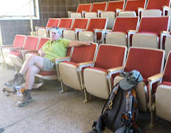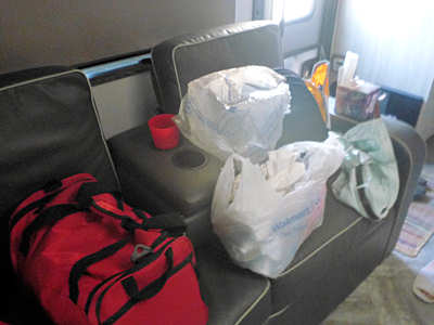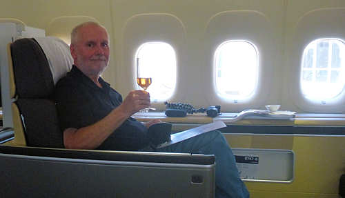 fahren wir unsere Sitze in die Liegeposition. Das ist so der einzige