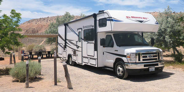 in die Schlafsäcke gekrochen. Jetzt am Morgen ist es draußen schon recht warm, aber noch angenehm. ![]() Dennoch steht unser Entschluss fest, zum Cathedral State Park zu wechseln. Schnell noch wird ein Geburtsgsgruß versendet, wobei wir Schwierigkeiten mit den Handys haben, speziell ich. ![]() Mein Telefon funktioniert schon seit Tagen nicht, Anitas zum Glück schon. Nach etwa 1,5 Stunden erreichen wir gegen 8:30 Uhr den Cathedral State Park, nachdem wir durch den Wechsel von Utah nach Nevada eine Stunde geschenkt bekamen. ![]() Erwartungsgemäß ist es auch hier sehr heiß, die Sonne brennt bestialisch, aber es gibt Strom! Nur etwa die Hälfte der Campsites ist besetzt, so dass wir eine gute Auswahl haben. Die Site kostet $30 per Tag einschl. Eintritt und Strom, das ist okay. Wir fahren den Slider aus, schließen den Wagen an den Strom, schmeißen die Klimaanlage an und das war es.... Denn jetzt hat es mich etwas gesundheitlich erwischt. Und während ich den Rest des Tages fast nur schlafe genießt Anita vermutlich die viele freie Zeit. Sie liest, wandelt unsere 3D-Filme um, grillt und versorgt mich. Alles in allem: Für heute ist der Tag bereits erzählt. |