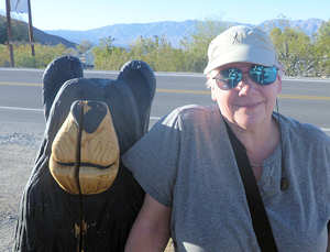 nicht vorzeitig aufgegangen sind.![]() Während Anita ausscheckt belade ich den Wagen und bin erstaunt, wie viele Taschen mittlerweile in ein Cabrio reinpassen. ![]() Zwei Trolleys, zwei Rucksäcke und zwei weitere Taschen passen hinein. Ich erinnere mich an unseren ersten Mustang 1993, bei dem wir die Koffer auf der Rücksitzbank deponieren mussten. Gut, da waren unsere Koffer auch noch etwas größer und wir hatten nicht nur Handgepäck. Im Storage verstauen wir die letzten Sachen und suchen und suchen....nach meinem kleinen Leatherman. Den dürfen wir ja nicht mitnehmen, weil er bei der Gepäckkontrolle gleich aussortiert werden würde. Wir finden ihn, in der Ecke einer Tasche versteckt und schon sagen wir "Servus" zu Vegas und fahren raus. Beim "Strippen", also beim Cruisen über den Strip, sehen wir nun Resort World, einen großen Hotelkomplex, dessen Baustelle über Jahre hinweg brach lag und genau bei unserem letzten Besuch vor mehr als 2 Jahren konnten wir feststellen, dass die Bauarbeiten wieder aufgenommen wurden. Wir sind ziemlich enttäuscht, hatte uns die Baustelle doch mehr erwarten lassen als "nur" einen neuen Hotelkasten. ![]() Beeindruckend ist allenfalls, dass der vordere Teil des Fassade ein riesiger Bildschirm ist. ![]() Auch am Fountain Blue, einem gigantischen blauem Koloss, der seit Jahren unvollendet am Strip steht, wird wieder gearbeitet. Wir sind gespannt, was uns beim nächsten Besuch erwartet. Fernziel ist heute Death Valley aber wir machen einen kleinen Umweg zu Seven Magic Mountain, auf die Anita im Internet zufällig gestoßen ist und die südlich von Vegas liegen. Dazu fährt man einfach den Las Vegas Boulevard in Richtung Süden und irgendwann tauchen sie am Horizont unübersehbar auf. Doch vorher taucht etwas Rekordverdächtiges auf: Ein langer Zug. Seit vielen Jahren sind wir von der Länge mancher Güterzüge in den USA fasziniert und soweit es möglich ist, zählen wir die Wagons. Nachdem wir vor paar Tagen einen Zug mit 130 Wagons zählen durften wird dieser persönliche Rekord nun mit 131 Wagons übertroffen. Gezogen (oder geschoben?) wird er von 6 hintereinander gekoppelten Zugmaschinen sowie einer weiteren am anderen Ende. ![]() Doch dann nähern wir uns dem anderen beeindruckenden und fotogenen Höhepunkt. Offensichtlich sind wir wohl nicht die einzigen, die auf diese Idee gekommen sind und gerade die jüngere (Tiktoc-)Generation nutzt diesen fotogenen Hintergrund. ![]() Das Wetter spielt uns so richtig in die Karten und der knackig blaue Himmel stellt einen hervorragenden Kontrast zu den bunten Skulpturen dar. ![]() Bald schon geht es weiter. In Pahrump halten wir mal wieder am Walmart für Getränke und Mitbringsel und dann geht es schon bald in die Wüste in Richtung Death Valley. Die Reihenfolge der Stopps ist wie immer: Eingangsschild,.... ![]() Tankstelle.... ![]() [aber nur, um uns die aktuellen Preise anzusehen] Visitor Center... ![]() und letztlich Stovepipe Wells Motel... ![]() Das Check-In erfolgt seitens des Mitarbeiters genauso sklavisch wie immer. Er weist uns Raum 223 zu, den wir gut kennen aber unsere zum Ausdruck gebrachte Freude darüber ignoriert er völlig emotionslos und erzählt einfach weiter. Anita meint anschließend, ich solle mir die Mühe sparen, ein Gespräch anzufangen, wenn die Mitarbeiter ihren Vortrag halten. Enttäuscht sind wir, dass der Pool geschlossen ist, weil es gestern einen Sandsturm gab. Die Logik erschließt sich mir nicht ganz, da der Pool doch eine Filteranlage hat und der Sand somit nach einiger Zeit aus dem Wasser isoliert sein sollte. Aber das Zimmer entschädigt tatsächlich. Es liegt ganz am Ende unseres Lieblingsblockes, nämlich dem Roadrunner-Block. Das Internet ist so wie erwartet: Nicht existent. Vor vielen Jahren hat es bei den Roadrunnern mal einen Zugang gegeben, der wohl gestohlen wurde und seither wurde an dem Zustand nichts mehr verändert. Na ja, wir sind halt auch in der Wüste. Nach einiger Zeit machen wir uns auf den Weg zu Panamint. Früher gab es dort "meinen" Bluecheese-Burger und für Anita Patty Melk oder Mushroom Avocad Swiss Burger, doch alle drei Burger waren bereits bei unserem letzten Besuch zusammengestrichen. Und auch jetzt gibt es laut Internet nur eine eingeschränkte Karte zu eingeschränkten Öffnungszeiten, genau wie im Saloon von Stovepipe Wells. Corona muss hier einiges bewirkt haben und das nicht im Positiven. ![]() Nach einigen Meilen erreichen wir kurz vor18 Uhr Pan amint, das trotz der eingeschränkten Öffnungszeiten schon geöffnet hat und wir setzen uns an einen unserer Lieblingstische, nämlich draußen auf der Terrasse. Der Wirt bringt uns freundlich die Karte und wir glauben im Burger-Himmel zurück zu sein, denn all unsere Favoriten sind zurück auf der Karte. Unsere Begeisterung bringen wir dem Wirt gegenüber zum Ausdruck und er versteht sofort, dass wir offensichtlich alte Gäste sind und schmeißt uns ein "Welcome back" um die Ohren. Wir schöpfen aus dem Vollen, machen aber erstmalig einen Fehler, denn wir bestellen eine Vorspeise (10 Flügel), die wir uns zwar teilen, was aber insgesamt doch zu viel ist. ![]() ![]() ![]() [Anita hat sich einen neuen Freund zugelegt] Gut gesättigt und kulinarisch befriedigt geht es zurück nach Stovepipe Wells. Die Rückfahrt ist immer wieder schön: Heute gibt es kein Wölkchen am Himmel, die Temperaturen beim Fahren reichen aufgrund der Berg- und Talfahrt von höllisch heiß bis angenehm kühl, die untergehende Sonne lässt die Schatten von uns und unserem Mustang in die Länge ziehen und Anitas Haare glänzen im Gegenlicht. Kurz nach der Ankunft wird es schon schnell dunkel und das wäre eigentlich für uns der richtige Zeitpunkt, in den Pool zu gehen, wenn er denn nicht geschlossen wäre. Und wäre er geöffnet würden wir jetzt auch nicht hingehen, denn wir wollen draußen noch einen kleinen Schlummertrunk zu uns nehmen aber ein erneuter Sandsturm bläst uns dermaßen viel Sand in die Augen und in die Geträ