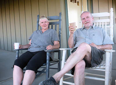 Der heutige Tag ist recht schnell erzählt. Vorweg: Swimming Pool ist immer noch geschlossen, was schon recht ärgerlich ist. Ironie der Gechichte ist, dass der Pool mit ausschlaggebend war, dasss wir hier zwei Nächte geplant haben. Anita ist immer so begeistert, wenn sie nachts aus dem Pool kommt und es dann draußen immer noch an die 30 Grad Lufttemperaratur hat und man nicht bibbert. Aber es sieht nicht danach aus, als würde hier und heute viel passieren. Wir fahren zunächt zu unserem Kiosk, den jeder kennt, der schon mal einen Bericht von uns gelesen oder gesehen hat. Wir machen ein paar Aufnahmen, die wir in unsere spätere Show einbauen werden. Anhschließend geht es nach Beatty um etwas zu trinken zu kaufen, aber hier werden wir nicht fündig. Aber das ist auch nicht der hauptsächliche Grund für unseren Ausflug in diesen Teil des Parks, vornehmlich wollen wir wieder mal nach Rhyolite, wo wir, von einem Ehepaar einmal abgesehen, wieder völlig allein sind. ![]() Wir freuen uns immer wieder auf diesen Besuch, denn hier herrscht eine ungewöhnliche, fast schon gespenstische aber auch spannende Atmosphäre und alle paar Jahre entdecken wir auch das eine oder andere neue Kunstobjekt. Und genau so ist es auch heute. ![]() Und ein altes Objekt ist renoviert. Das mit Mosaiksteinchen versehene Sofa war vor einigen Jahren ziemlich ramponiert und wurde zwischenzeitlich restauriert. Drauf Sitzen ist gestattet, jedoch mit Vorsicht und schon gar nicht in Gruppen. Wir fahren zurück und an Stovepipe Wells vorbei bis nach Firnace Creek, um etwas für einen Sundowner zu kaufen. Am Abend bin ich dann aufgrund Anitas Idee unverschämt und schleppe die zwei Schaukelstühle vom Anfang des Roadrunner-Gebäude zu uns nach hinten. Eigentlich dürfte das auch gar kein Problem darstellen, den seit gestern bemerken wir etwas, was uns ebenso freut wie beunruhigt. Im hinteren Gebäude ist die Seite zu den Dünen (Rooms with Sand Dunes Views) außer unserem Zimmer nur noch ein weiteres belegt; zur anderen Seite sind es evtl. drei oder vier Zimmer, die belegt sind. Der Gebäudekomplex "49ers" ist überhaupt nicht bewirtschaftet und die anderen, klassischen Räume sind auch nur zu einem Bruchteil belegt. In all den letzten Jahren haben wir Stovepipe Wells fast immer komplett ausgebucht erlebt, insbsondere im Frühjahr und Frühsommer. So sehr wie die Ruhe genießen, besorgt sie uns auch. ![]() Doch jetzt zu uns: Wir schaukeln so vor uns hin und mit einem Sundowner im Pappbecher (derzeit gibt es in den Räumen keine Gläser) lassen wir den letzten Tag in der Natur langsam ausklingen. |