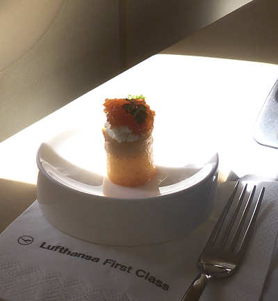 nur: "Eigentlich wären wir ja schon gestern geflogen". Das ist richtig, denn dass wir erst heute fliegen ist der Tatsache geschuldet, dass gestern das Fluggerät ausgetauscht wurde und es unsere Buchungsklasse dort nicht gibt. Doch der Reihe nach: Wir haben uns einen langersehnten Wunsch erfüllt, wenn auch nur teilweise. Vor Jahren sind wir mit dem Airbus A380 der Lufthansa geflogen und der Wunsch keimte, einmal im Leben mit dem A380 in der First Class bei der Lufthansa zu fliegen. Anita, pragmatisch veranlagt, meinte nur: "Okay, dann lass uns fleißig Meilen sammeln", was wir auch getan haben. Endlich genügend Punkte beisammen erhielten wir zweimal hintereinander keine Plätze in der First Class, so dass wir es vorzogen, stattdessen mehrmals auf Punkte in der Business-Class zu fliegen, was wir damals auch nicht bereut haben. Nachdem wir nun wegen der pandemischen Lage und dem damit verbundenen Travel-Bans zwei Jahre lang nicht fliegen konnten, sahen wir uns im Herbst letzten Jahres nach Flügen für 2022 um. Wieder sollte es die Lufthansa sein, möglichst die 747-8, nachdem der A380 derzeit ausgeflottet ist und als Buchungsklasse schwebte uns schon Economy-Plus vor. Anita entdeckte dann Flüge zu einem eher ungewöhnlichen Preis und wir buchten die jetzigen Flüge in der Business-Class hin und zurück. Und dann ergab sich auch noch die Möglichkeit, den Rückflug zu einem akzeptablen Preis upzugraden und so stand zunächst fest, dass wir zurück in der First Class fliegen werden. Bis wir dann im Januar einen Anruf erhielten, dass das Fluggerät ausgetauscht wird und es dort die First Class nicht gibt. Eine Umbuchung auf den selben Tag, nur etwas früher, wäre möglich gewesen, doch da waren "unsere" Sitze nicht frei. Unsere Sitze? Dazu kommen wir noch. Also hat Anita recherchiert und festgestellt, dass auf dem heutigen Flug die gewünschten Plätze frei sind und deswegen fliegen wir erst heute. Doch jetzt chronologisch: ![]() Zunächst wird gefrühstückt, aber recht wenig. Denn gerne würden wir in der Lounge am Flughafen noch etwas essen. Übrigens gibt es heute statt der Hash Browns Egg Rolls, also offensichtlich gibt es hier auch Abwechslung. Danach checken wir im Hotel aus und fahren einige Meilen zum Vermieter, um unseren Wagen abzugeben. ![]() Von hieraus geht es mit dem Shuttle zum Flughafen. Der heutige Status bringt uns bei der Gepäckkontrolle nichts, denn es gibt zwar eine Fast Lane, die ist aber geschlossen. Sie ist aber auch nicht notwendig, denn es sind so viele Schalter geöffnet, dass es sehr schnell geht. Erstmalig werde ich in der Röntgenanlage auf einen verdächtigen Punkt am Oberkörper angesprochen und sogleich untersucht. Ich zeige ihm, dass es sich um den unter der Haut implantierten Port handelt. Ich bin insofern erstaunt, da ich vor vielen Jahren bei der Kontrolle darauf hingewiesen habe, dass ich einen Port habe, was überhaupt nicht von Interesse war. Seither habe ich das ignoriert und bin niemals drauf angesprochen worden. Warum heute? Keine Ahnung: Am Display ist gut zu erkennen, dass dort an einer Stelle "irgendwas" ist. Vielleicht wird hier ein neuartiges Gerät eingesetzt. Unser nächstes Ziel ist die Lounge, die wie ja von unseren damaligen Flügen über Los Angeles schon kennen. Der Empfang ist freundlich und nachdem wir die Bordkarten zeigen, werden wir statt zu "unserer" Lounge in eine weitere Lounge geführt, die wohl der First Class vorbehalten ist. ![]() Wir sind mutterseelenallein und werden durch verschiedene Mitarbeitende hervorragend verköstigt. Das Angebot der Business-Lounge ist größer, weshalb man uns anbietet, jederzeit von drüben etwas zu holen. Wir bestellen aus dem dennoch reichlichen Angebot dieser Lounge lediglich eine Tomatensuppe und für mich einen Shrimps-Cocktail. ![]() Anita lässt es sich nicht nehmen und greift zum Champagner, ich bleibe lieber beim Rotwein, dessen Preis lt. Internet unverschämt ist. Wir verweilen einige Stunden bis wir dann doch mal Richtung Gate gehen. Um 14:20 Uhr soll das Boarding beginnen, wie so oft beginnt es erst deutlich später. ![]() [rot markiert: 1K, Anitas Platz] Es gibt acht Plätze in der First Class und alle acht Passagiere, einschließlich uns, dürfen sich als erste anstellen, wobei mir der Zutritt zur Maschine aber dann zunächst verwehrt bleibt und ich zum Counter muss, während Anita schon fast beim Einsteigen ist. Ich hole Anita zwecks Übersetzung dazu, denn der Mitarbeiter erzählt mir, dass mit meinem Sitz etwas nicht stimmt. Es stellt sich heraus, dass einer "unserer" Sitze defekt zu sein scheint. Uns ist schleierhaft, was die Konsequenz sein könnte. Auf jeden Fall bestätigen wir, dass wir trotzdem fliegen möchten und dann darf auch ich rein. Wir acht Passagiere stehen aber dann doch noch am Gate, denn irgendwas ist in der Klasse noch nicht vorbereitet und nach paar Minuten dürfen wir dann doch ein. Wir acht werden auf dem Flug von zwei Flugbegleiterinnen betreut und verwöhnt und sofort gibt es eine sehr freundliche Begrüßung. Beeindruckend ist, dass wir stets mit Namen angesprochen werden. Wir kennen ja die Wirkung dieser Ansprache aus der Psychologie: Jeder hört am liebsten seinen eigenen Namen. Die Begrüßung ist ähnlich der Business-Klasse, d.h. sogleich wird uns ein Getränk angeboten, klassisch sind ein Glas Champagner und dazu ein paar Nüsse und Mandeln. ![]() Kaum auf Flughöhe beginnt der Service, wobei es vorweg eine raffinierte Kleinigkeit gibt. Eine winzige Kartoffel, die mit Ziegenkäse gefüllt ist und ebenso gut schmeckt wie sie pfiffig aussieht. ![]() Jetzt wird es etwas dekadent: Aus dem breitgefächerten Angebot wählen wir als Vorspeise Kaviar bzw. Anita Perlgraupensalat mit Rinderfilet, als Hauptspeise jeweils Rinderfilet mit Hummer und als Dessert eine Käseplatte. Da wohl noch etwas übriggeblieben ist, bietet man mir eine zweite Portion Kaviar an, was ich gerne annehme. ![]() Das Essen wird, wie schon in der Business-Class, nicht mit einem 